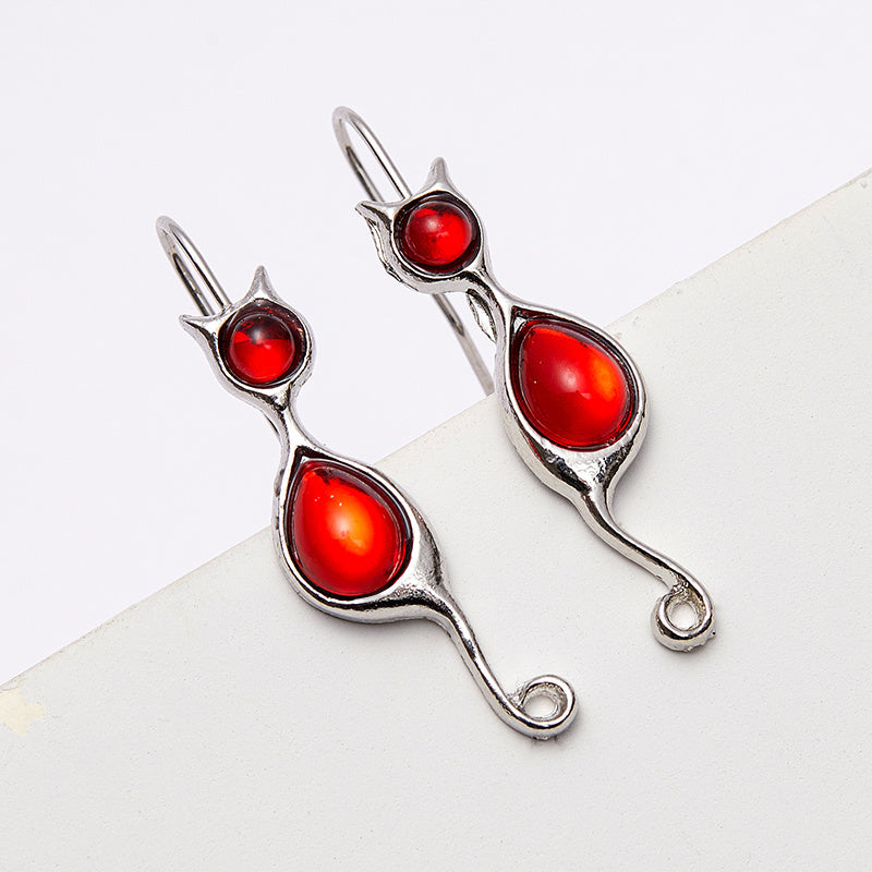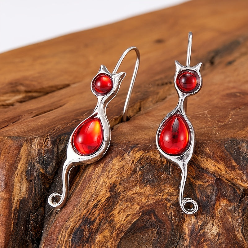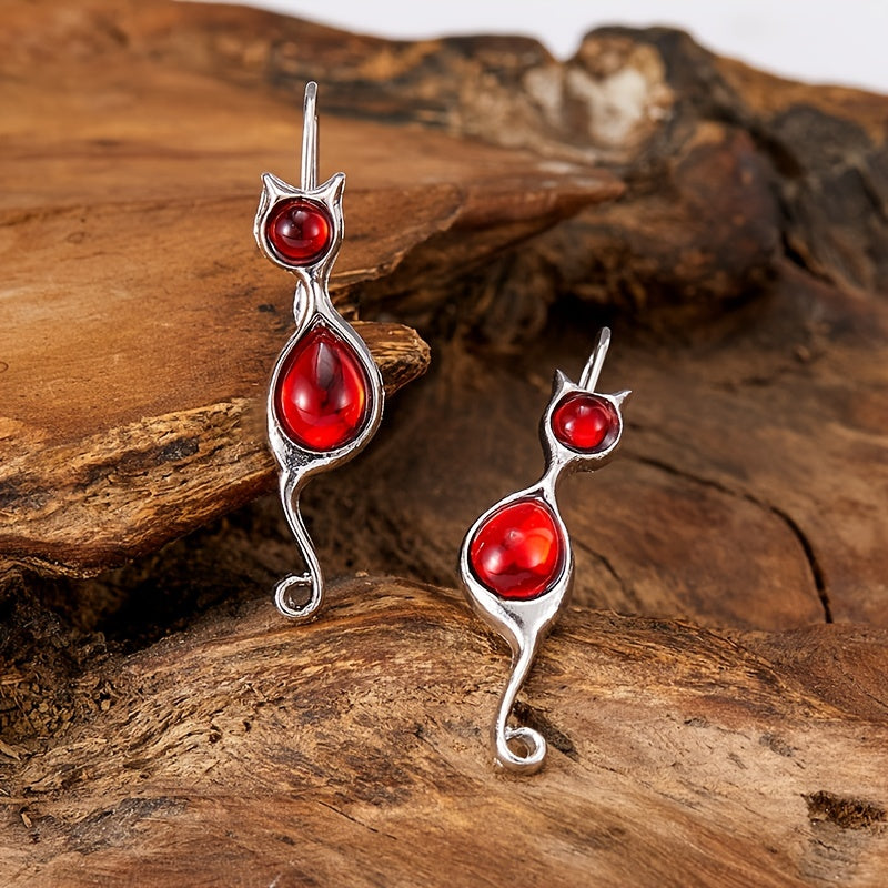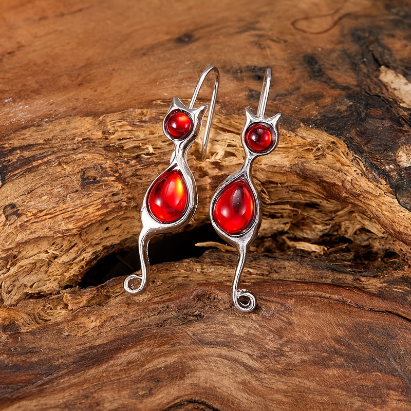 These elegant cat earrings feature gemstone pendants that add a touch of sophistication to any outfit. They make a perfect gift for cat lovers.