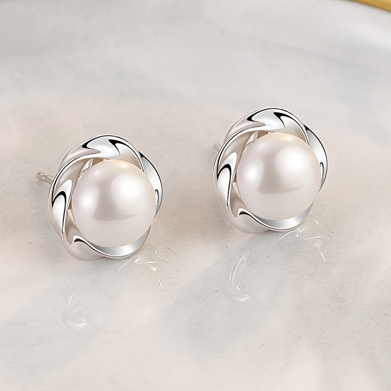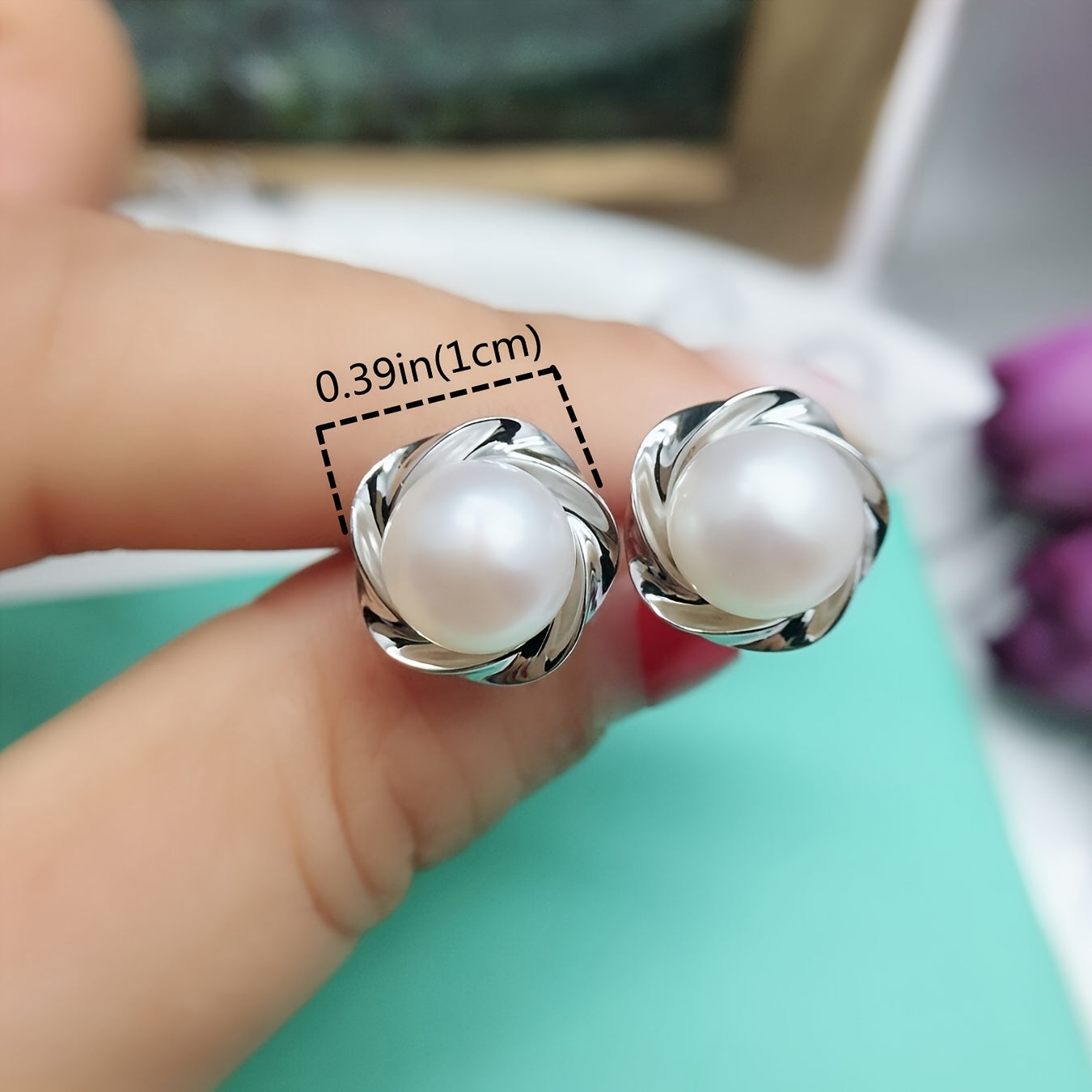 Add a touch of elegance with these faux pearl stud earrings. Perfect gift for ladies.