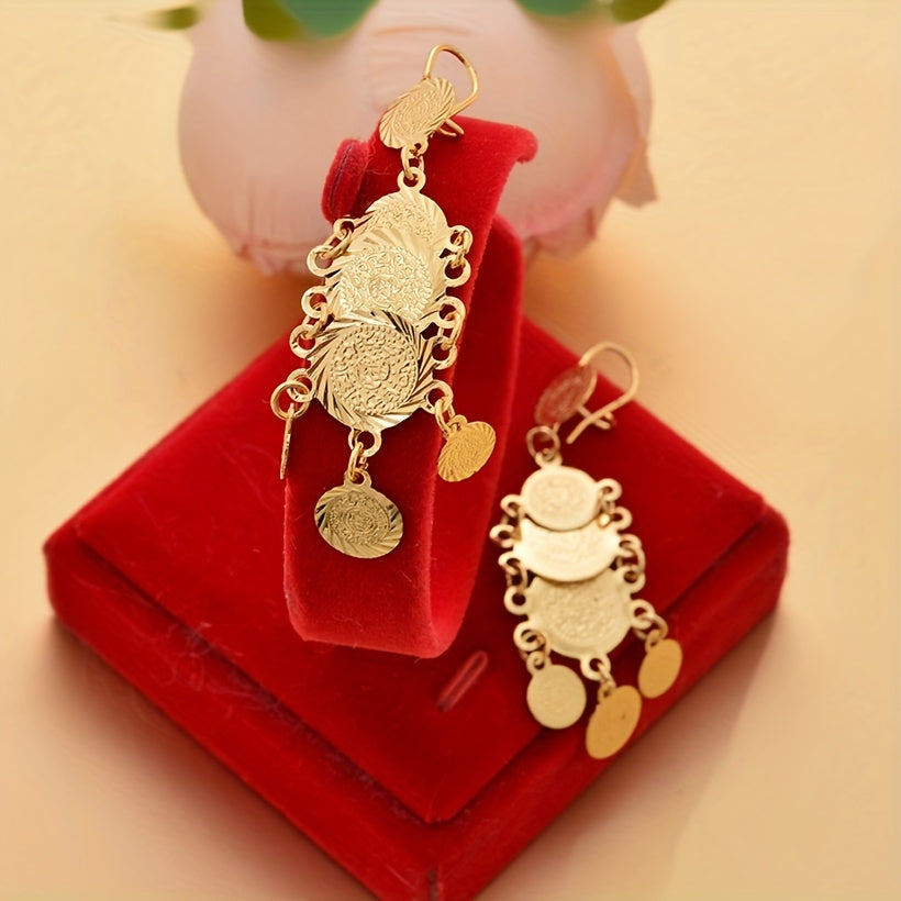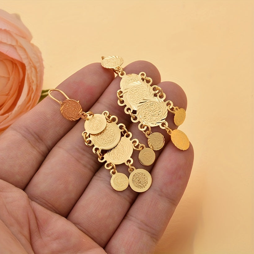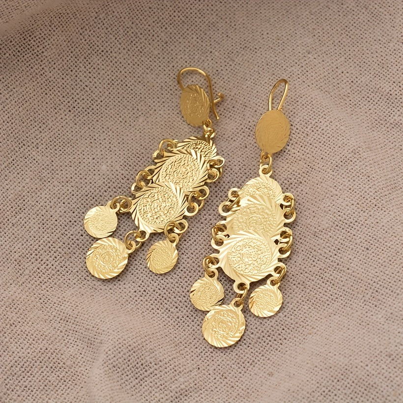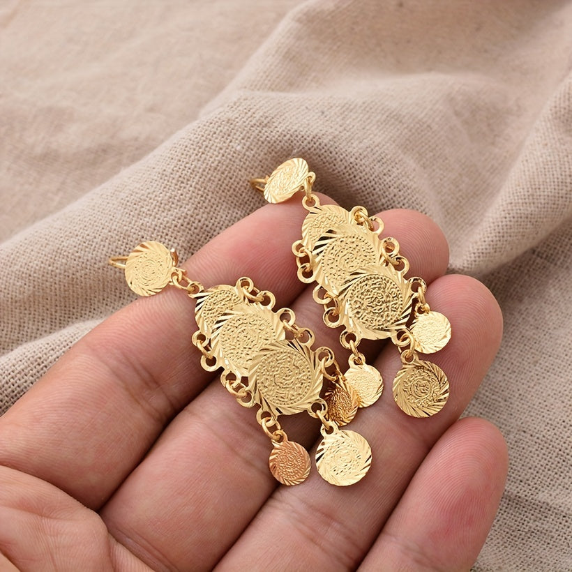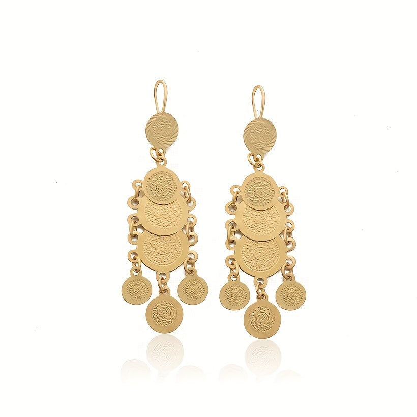 Stylish and elegant drop earrings designed for women and girls. Featuring a round textured metal decoration, these earrings add a touch of sophistication to any outfit.