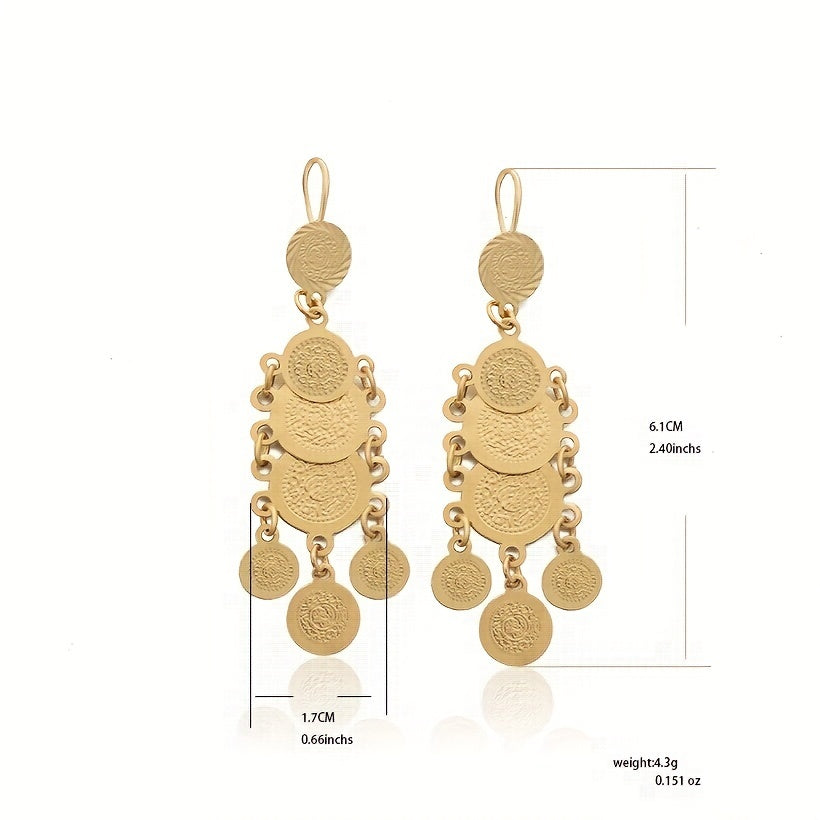 Textured Metal Drop Earrings Round Decor Drop Earrings