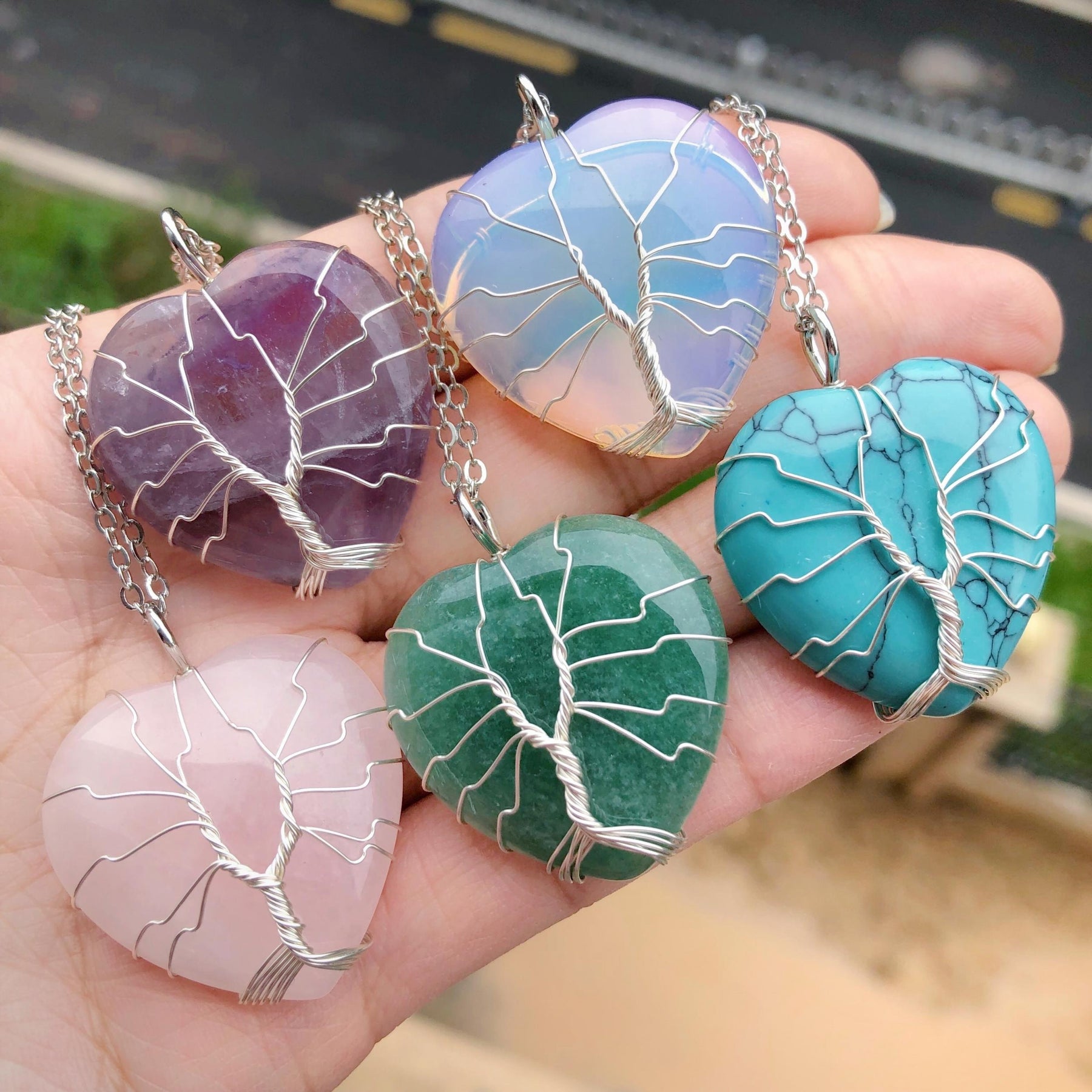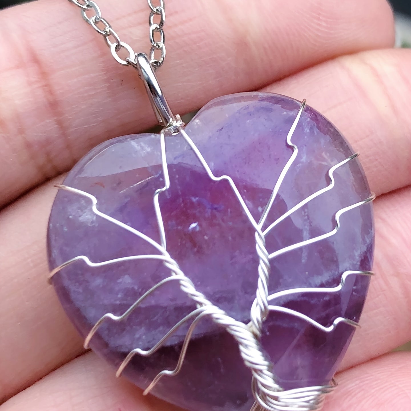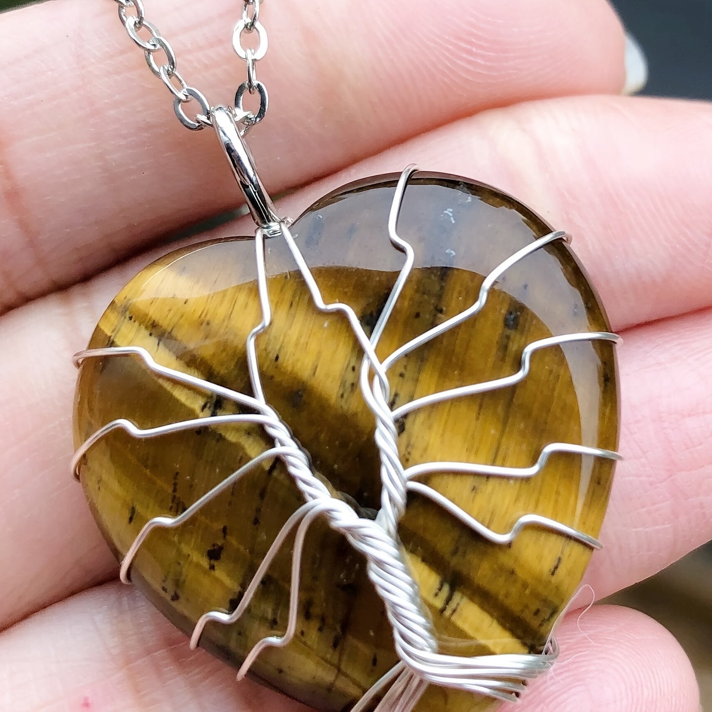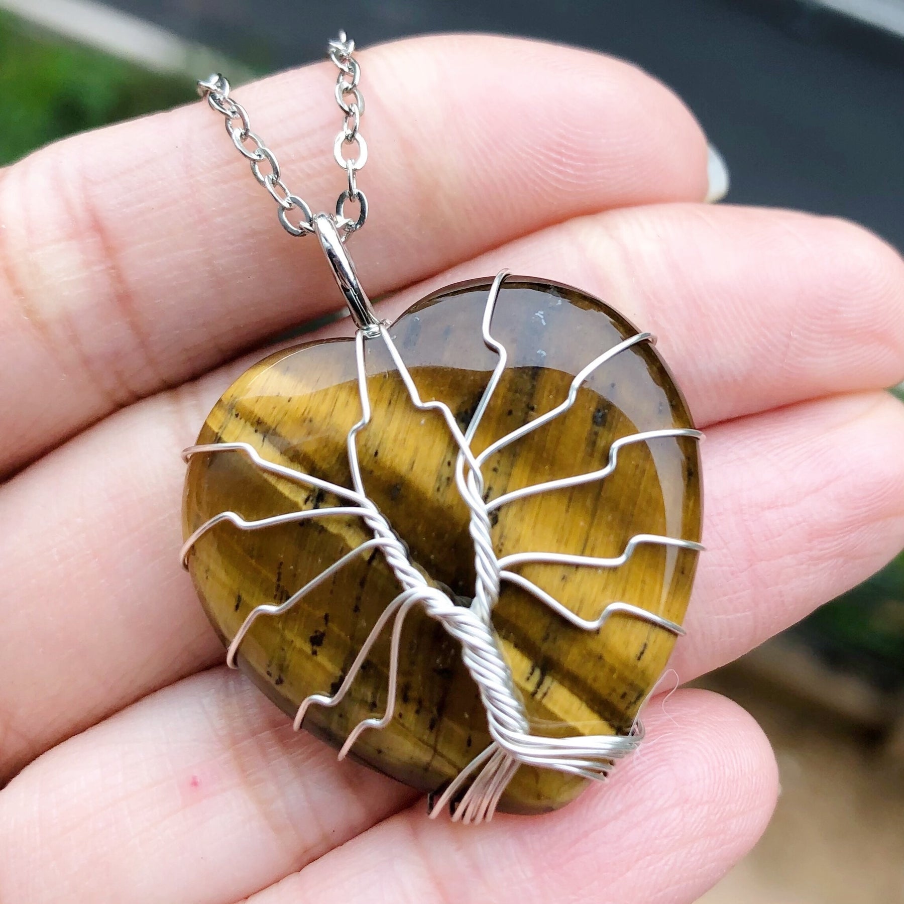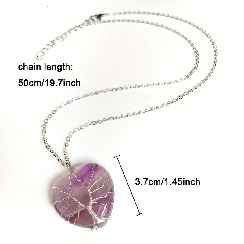 Embrace the healing energy of natural gemstone crystals with this Tigers Eye Tree Of Life necklace. Handcrafted with love and positive vibes, featuring a beautiful silver chain and Amethyst stone. Perfect for hippie chakra jewelry enthusiasts.