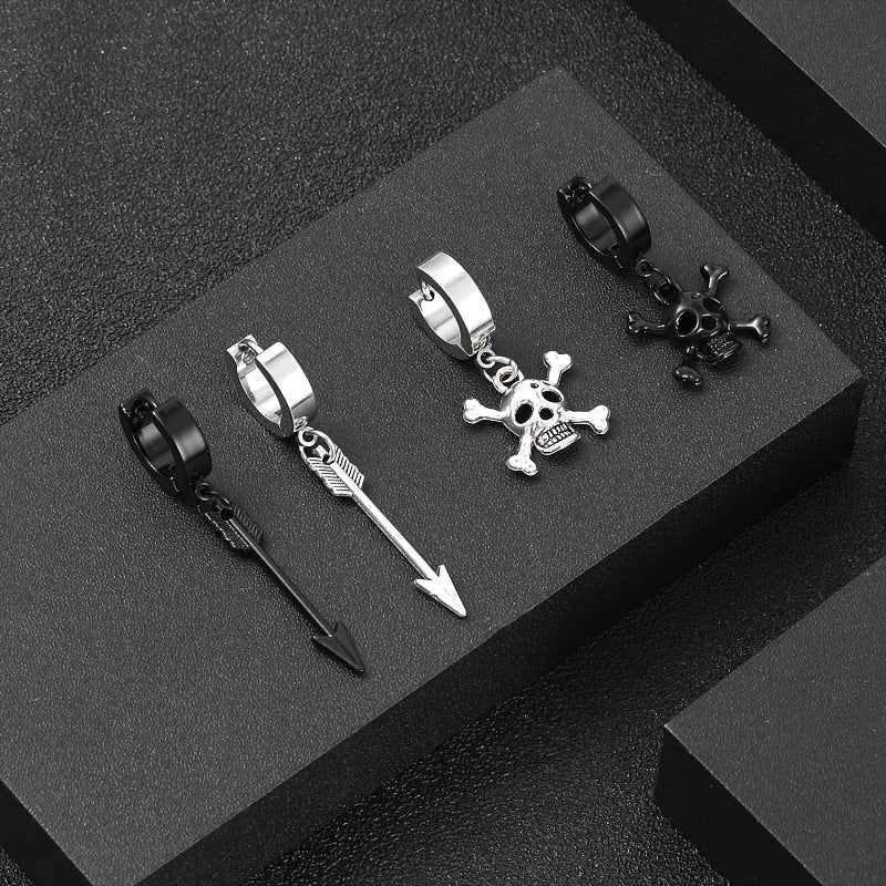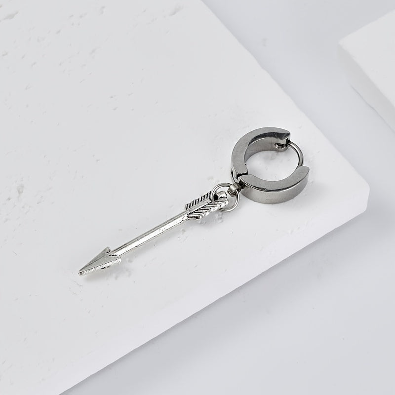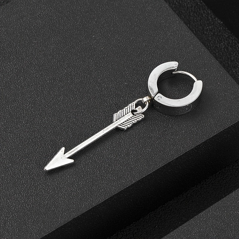 Add a dash of personality with this street-style arrow earring. Crafted from titanium steel, it features an arrow tail skull pendant that adds a hip hop vibe to your look.