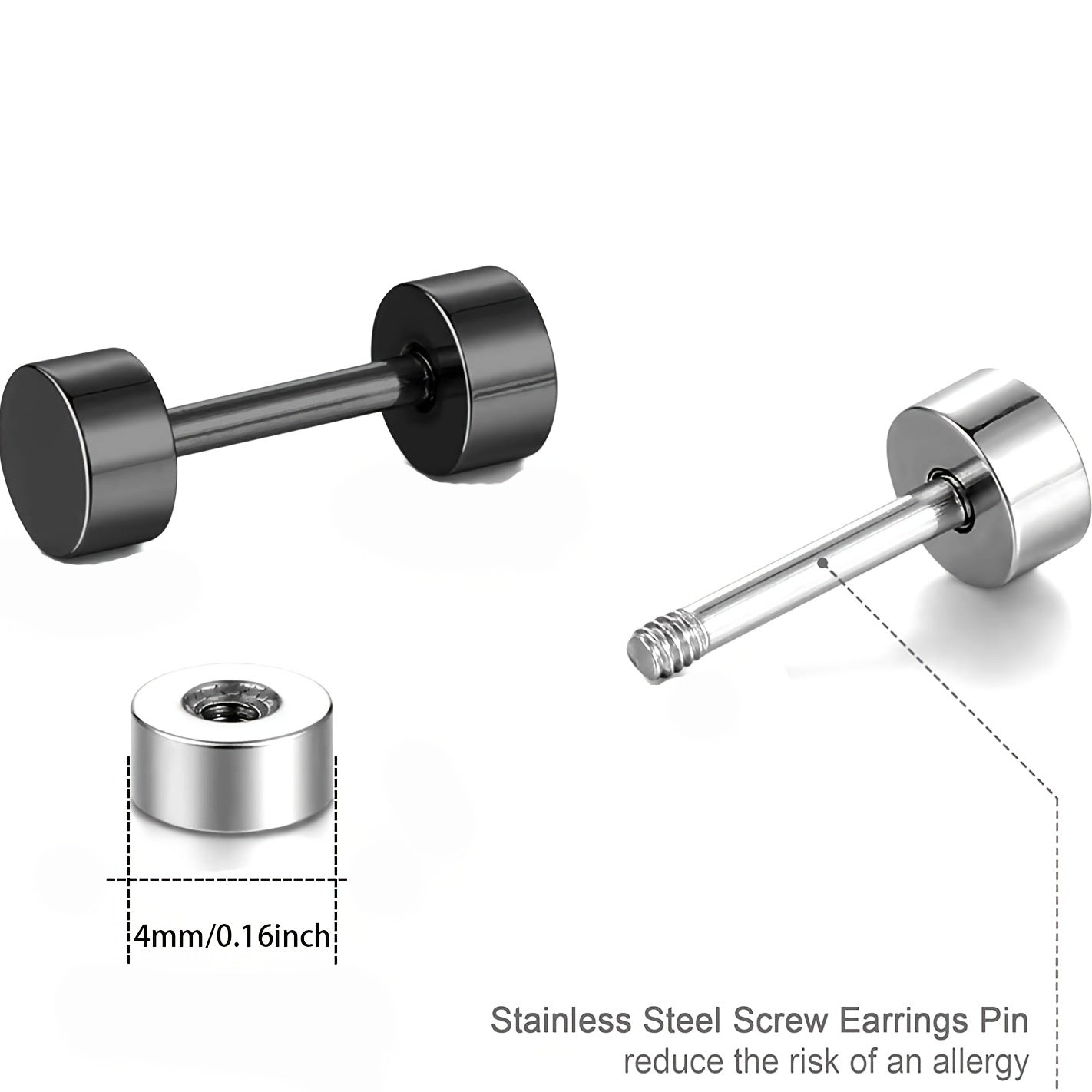 Achieve a sleek and modern look with these high polished titanium steel dot earrings. The pack includes 5 pairs of flat back disc stud earrings in sizes 3MM, 4MM, 5MM, 6MM, and 8MM.