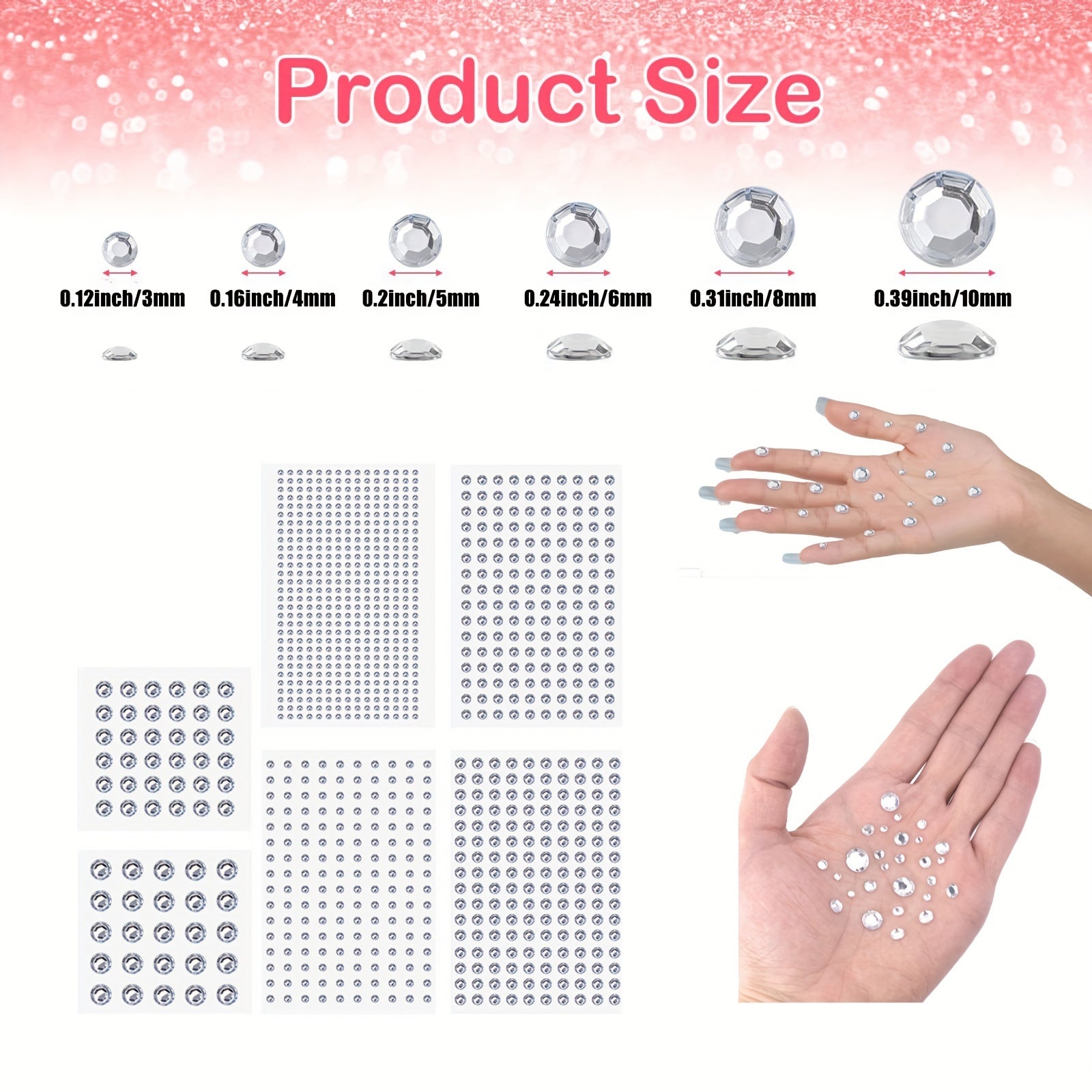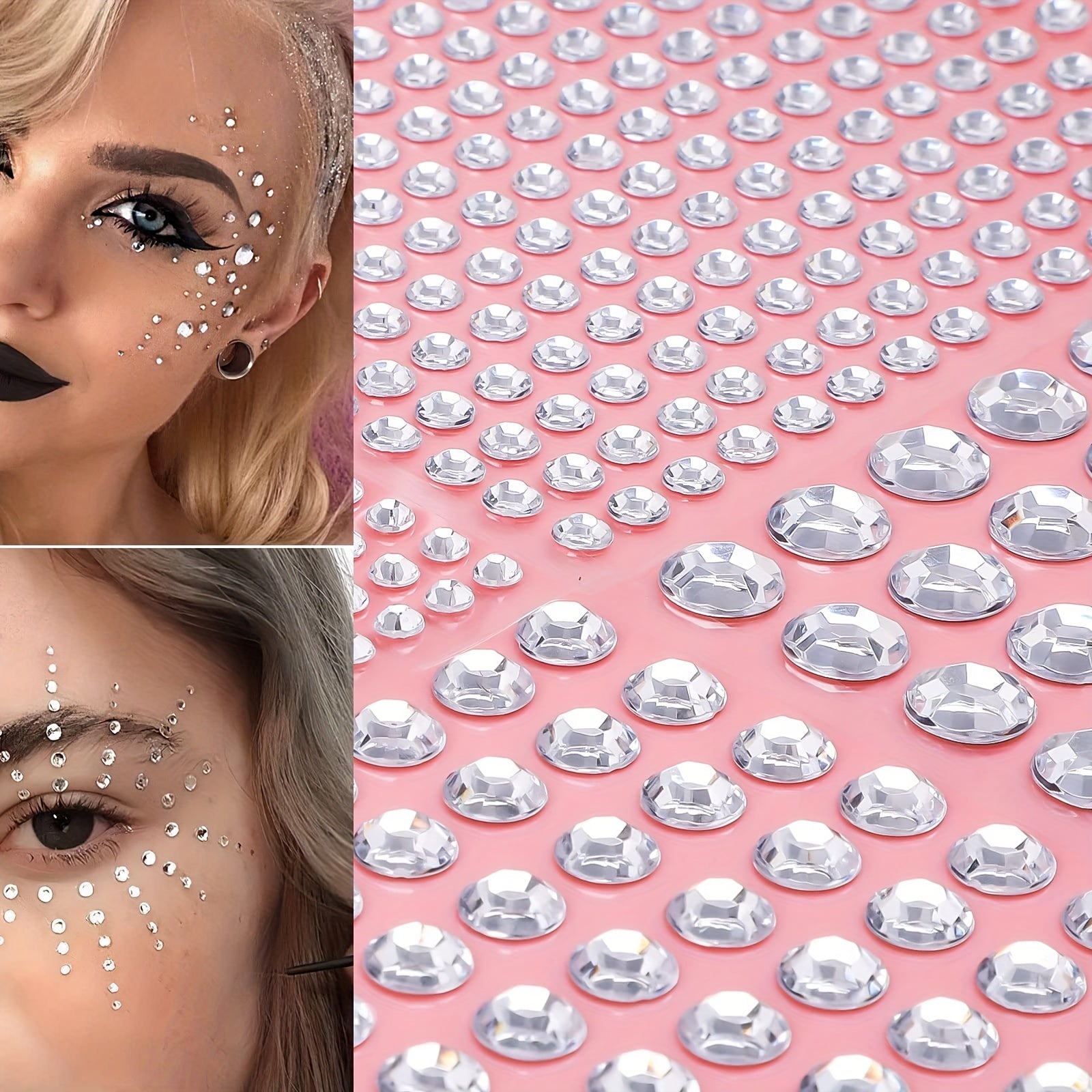 Get creative with these rhinestone stickers for face and hair makeup decoration. The set includes 450pcs of transparent gemstones for a dazzling look.