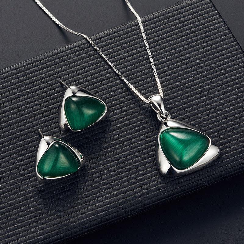 Triangle Shape Pendant Necklace & Stud Earrings Jewelry Set