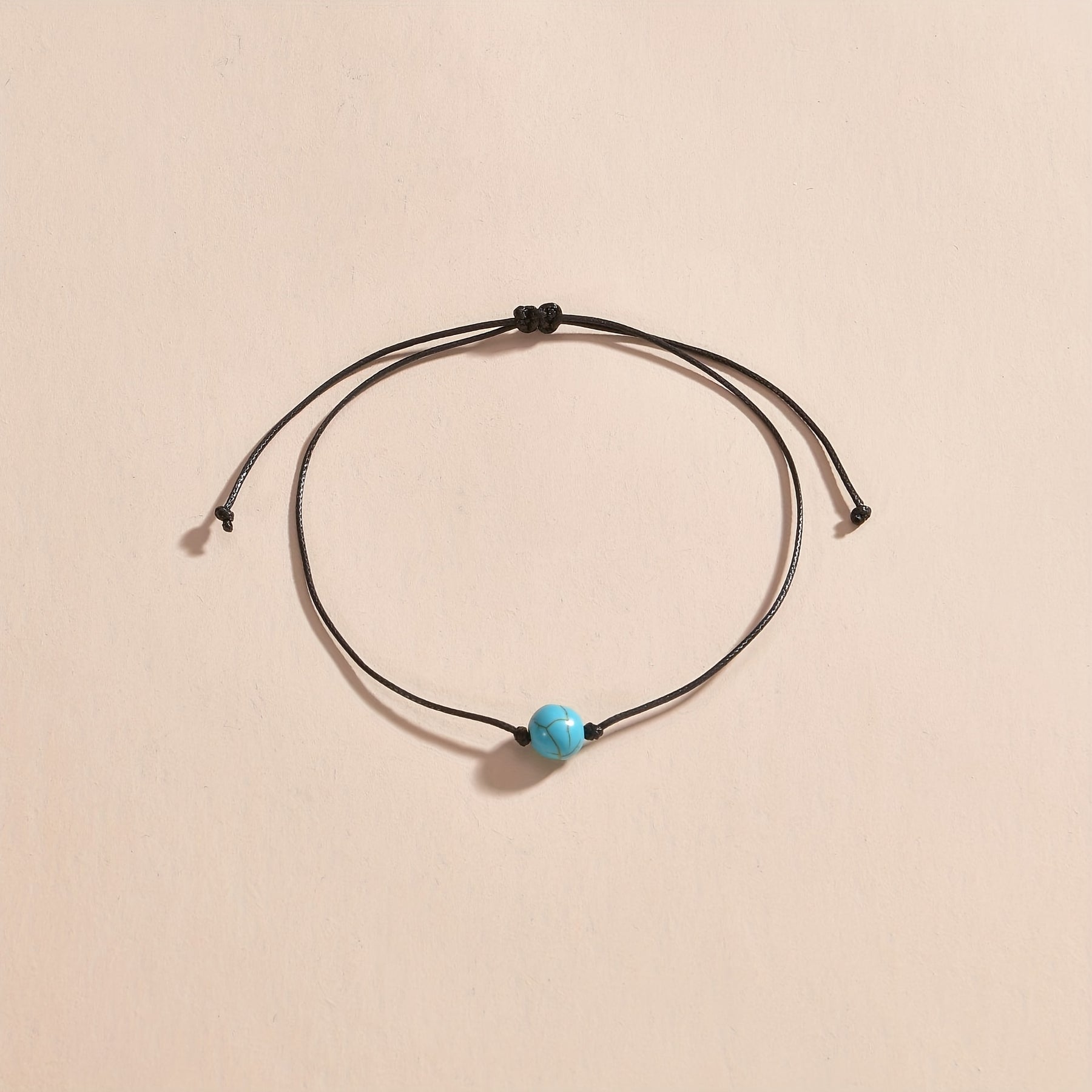 Turquoise Bead Anklet for Men Adjustable Minimalist Design