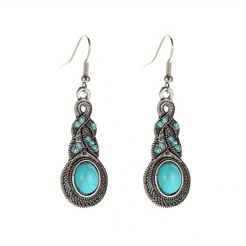 Turquoise Drop Earrings Set with Rhinestone Inlay