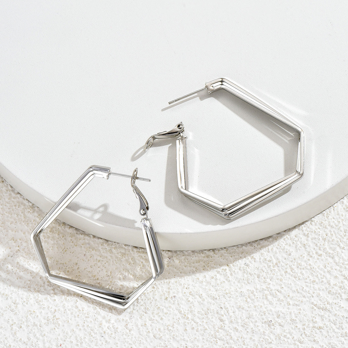 These three-layer twisted polygon stud earrings are a stylish and elegant addition to any outfit. They are made of high-quality 925 silver, making them a perfect gift for women, moms, wives, girls, or any special lady in your life.
