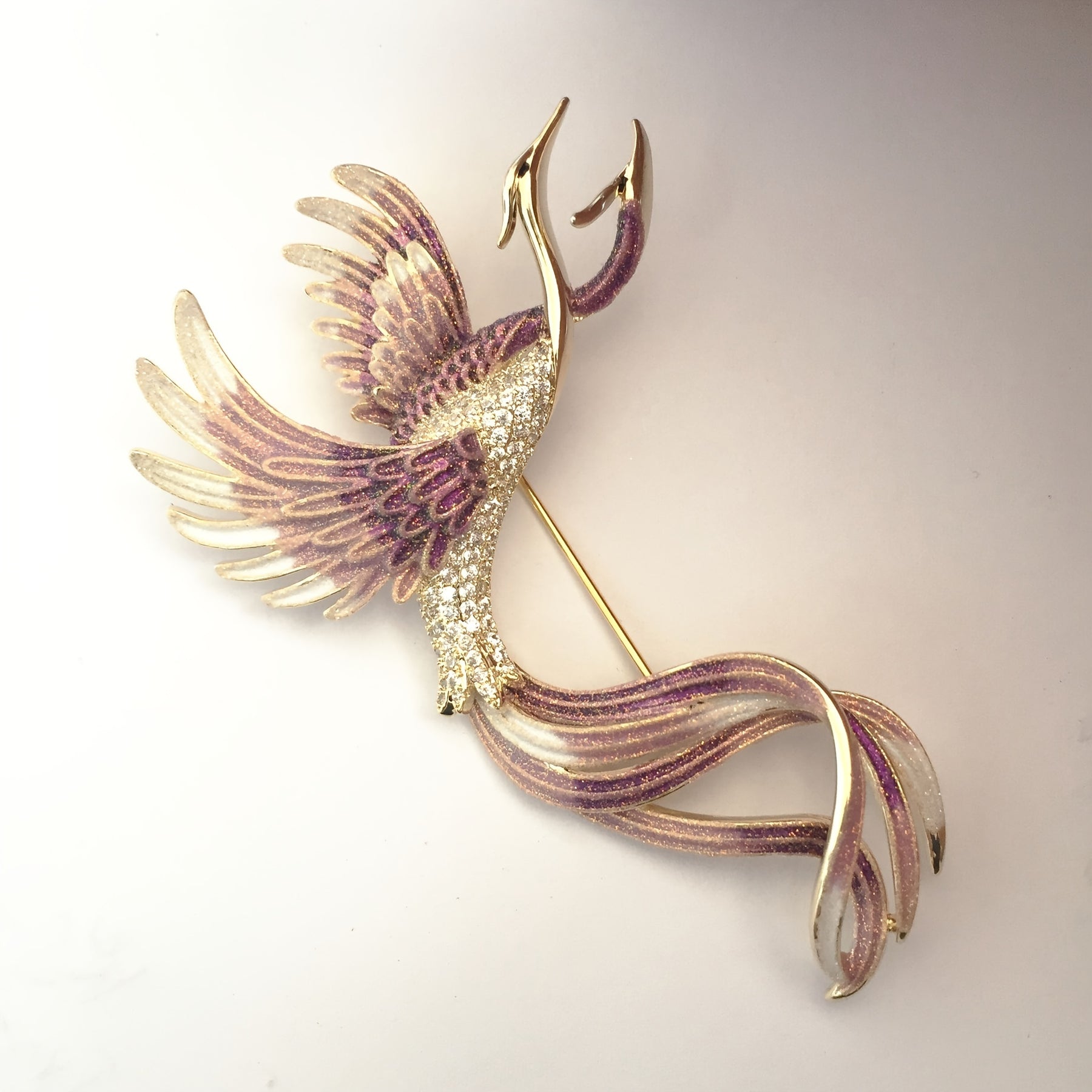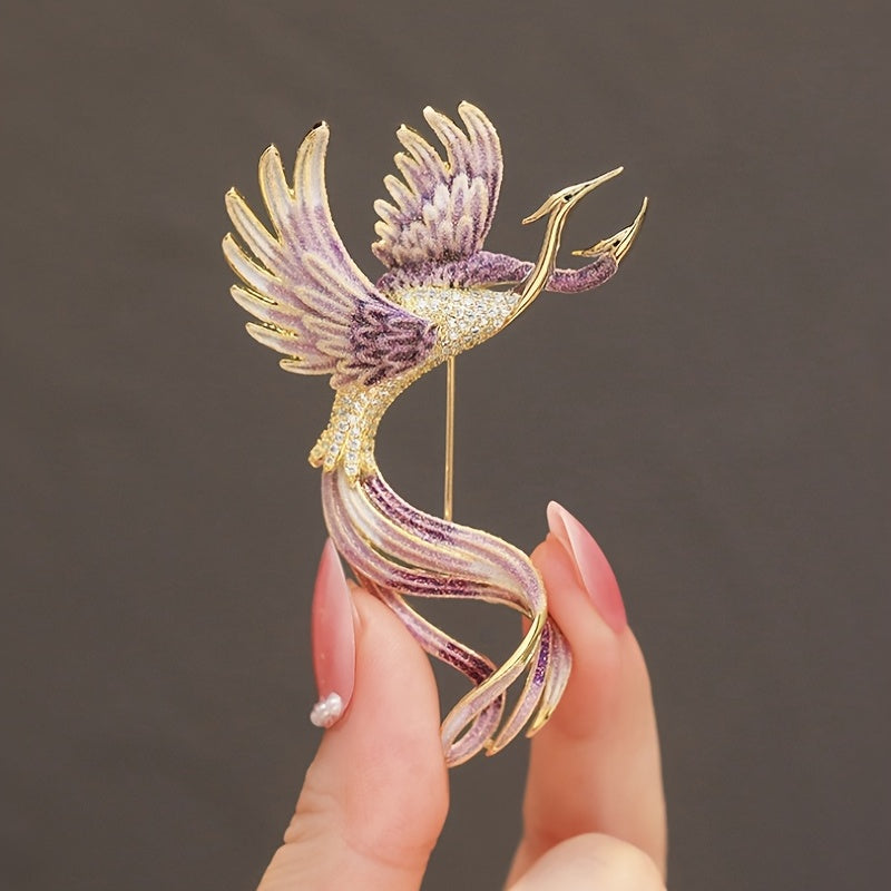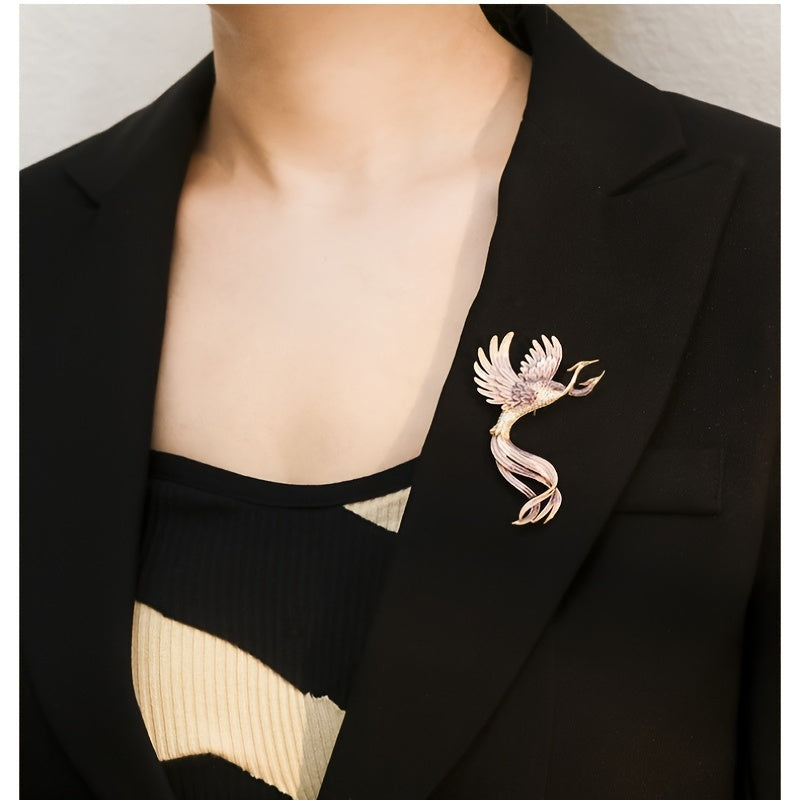 This stunning brooch features a two-headed phoenix bird design with gradient crystals and enamel. Perfect for adding a touch of elegance to your outfit.