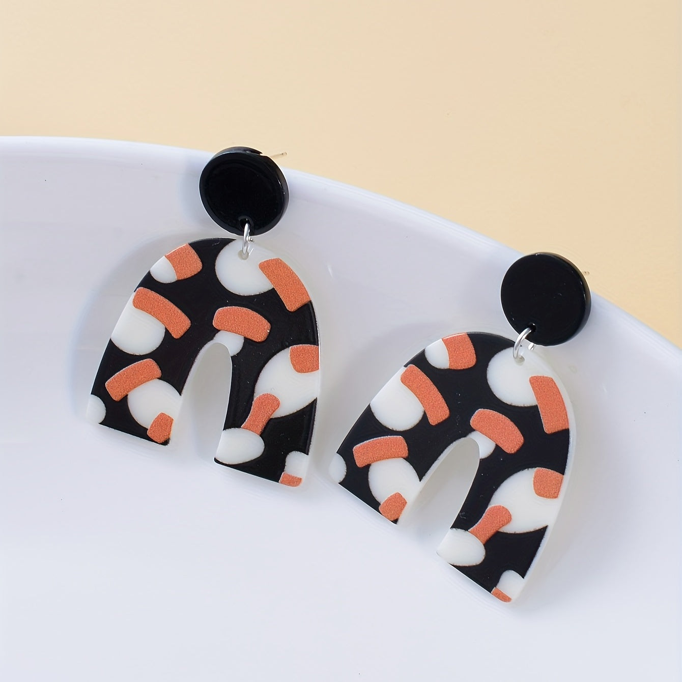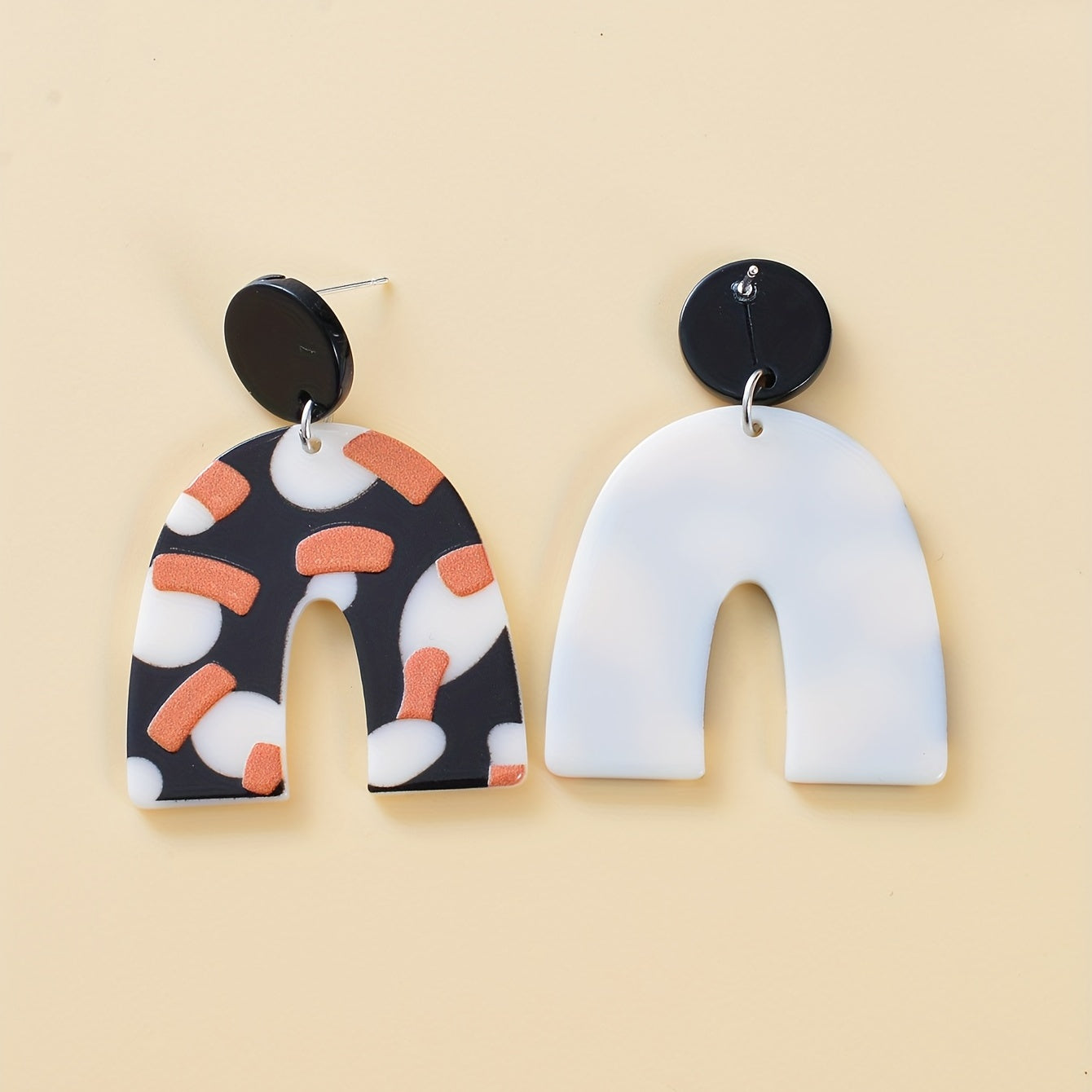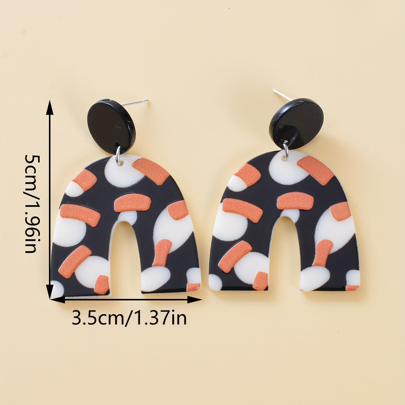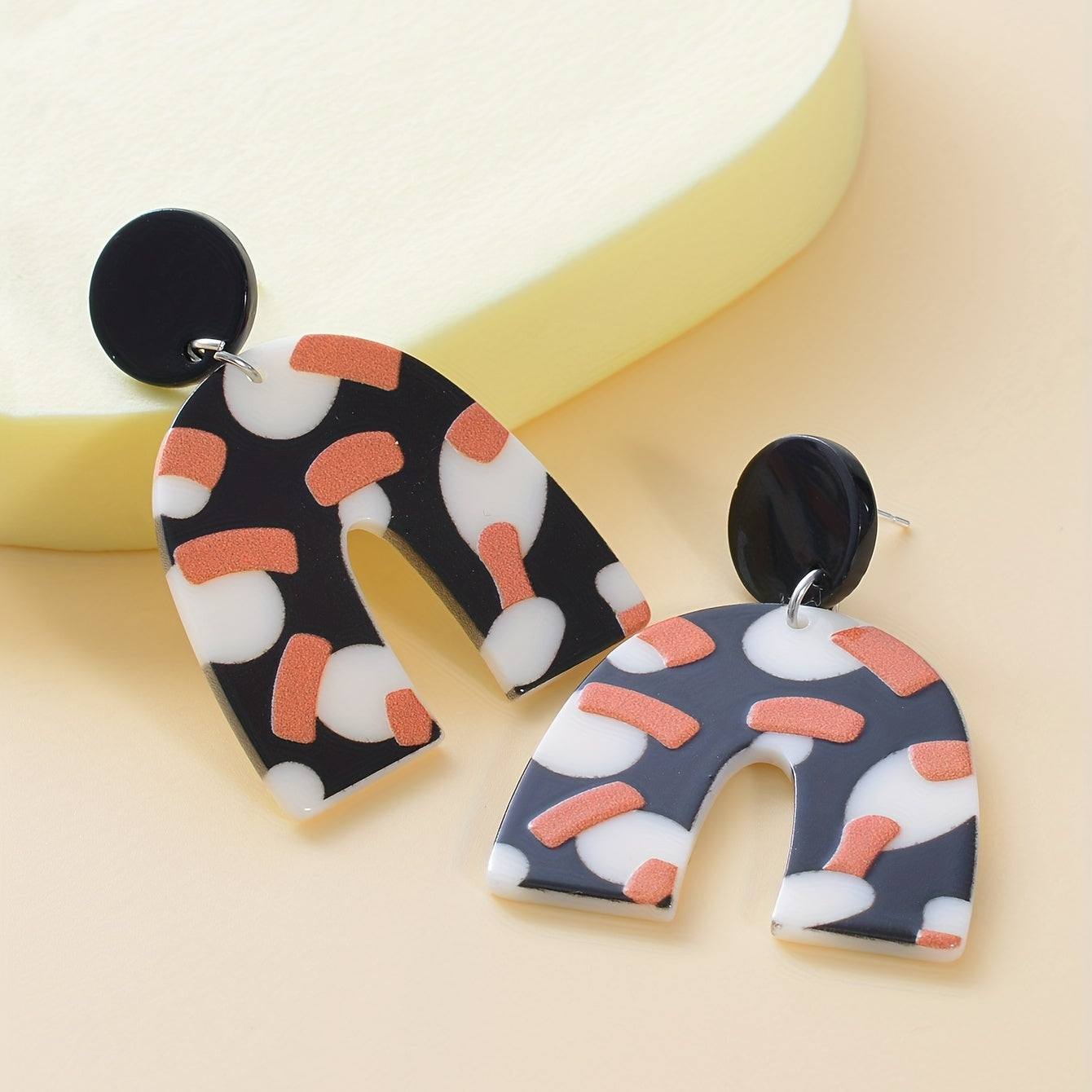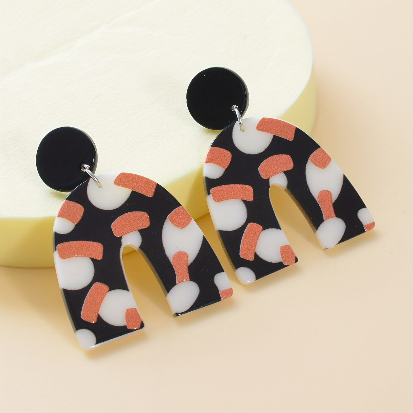 These versatile earrings feature a retro-inspired design with a U shape and dot pattern. Made from acrylic, they are perfect for adding a touch of vintage charm to any outfit.