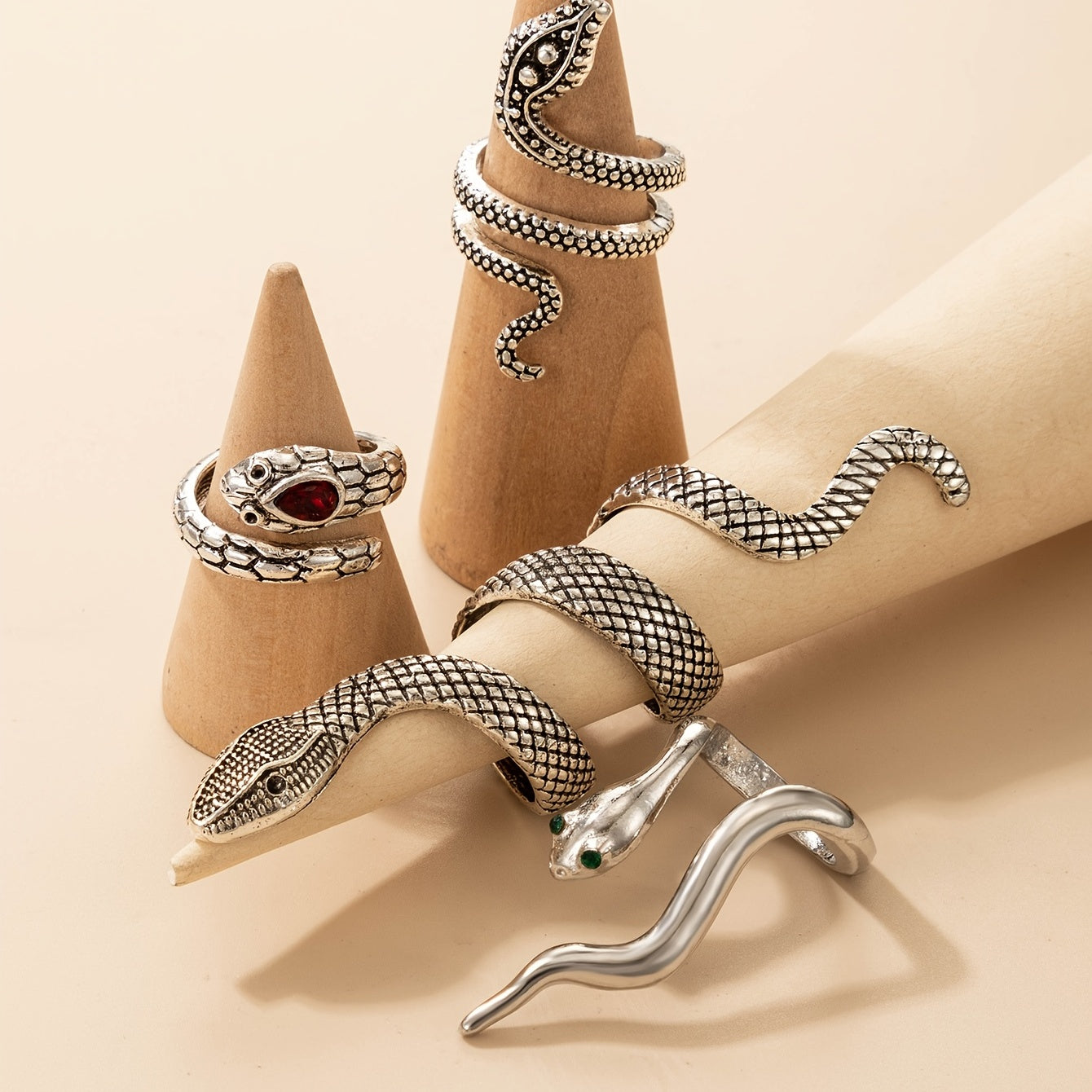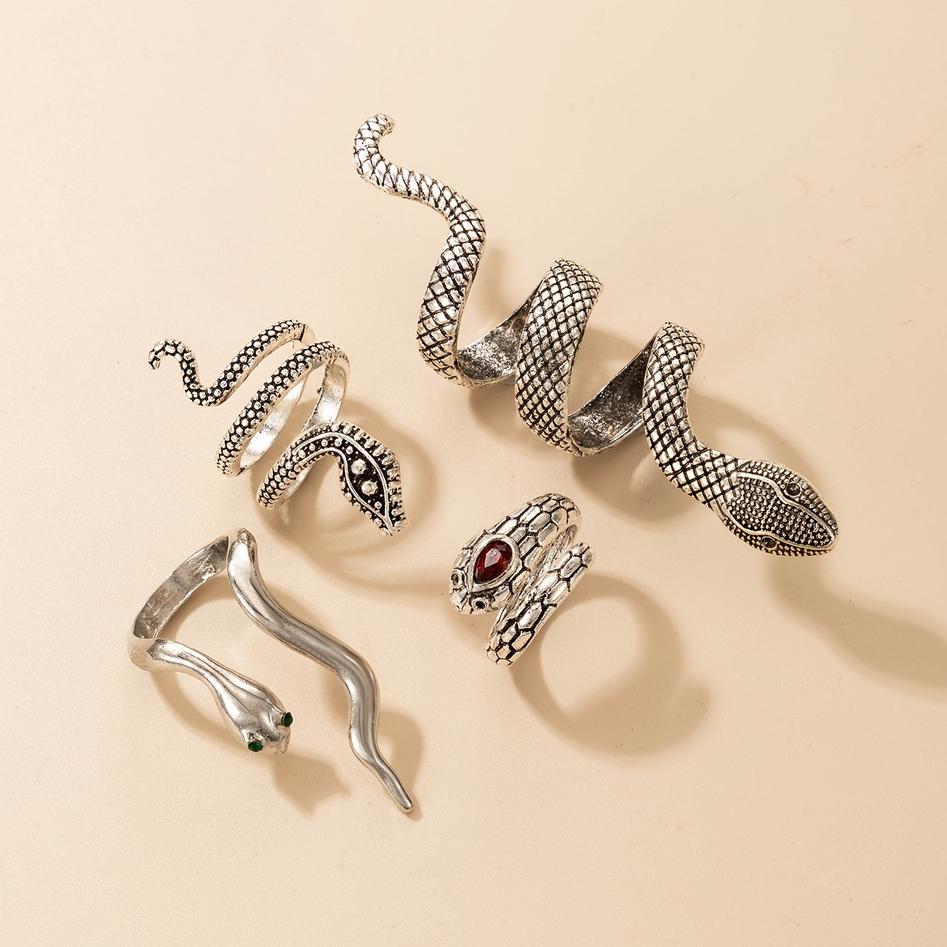 • Set of 4 snake rings for women