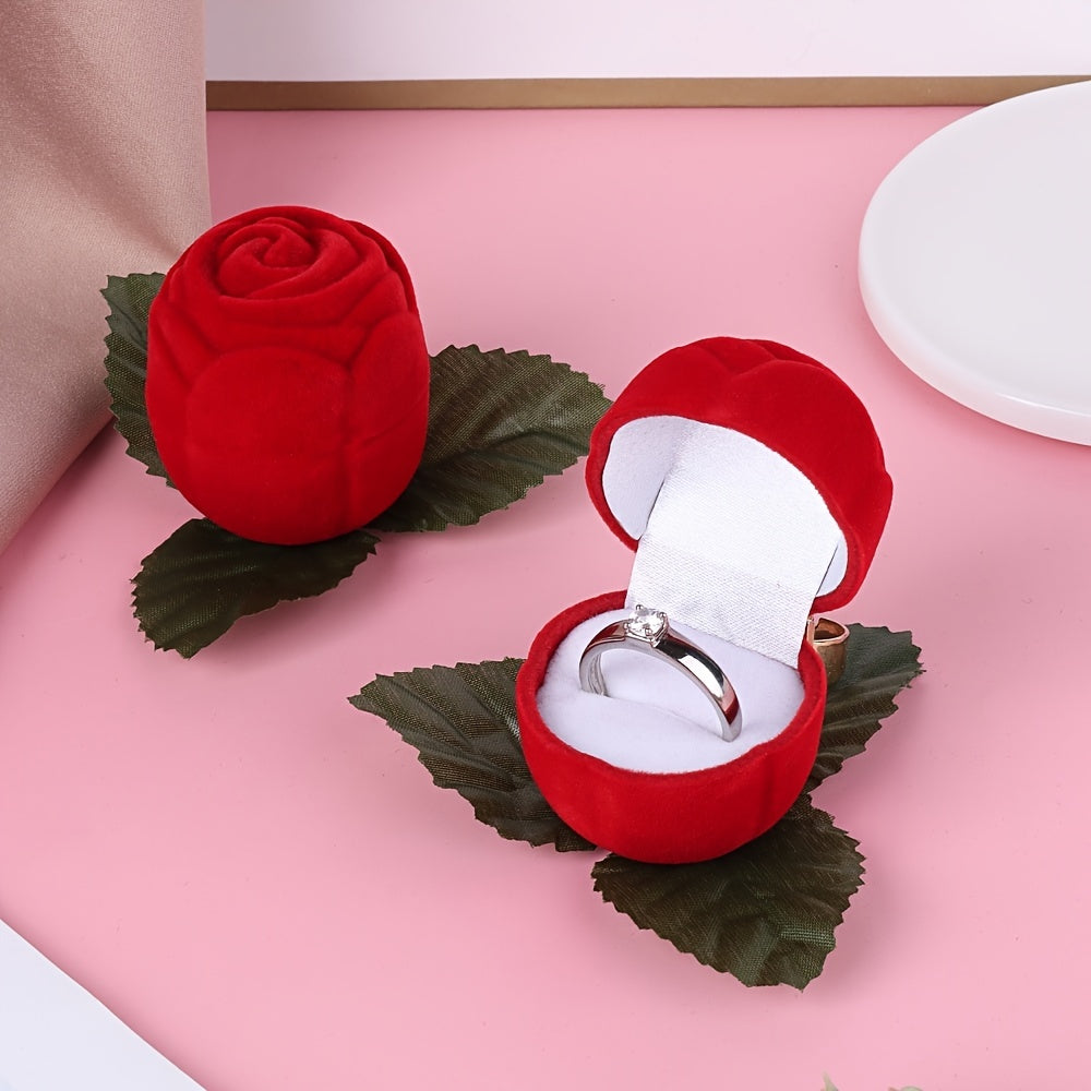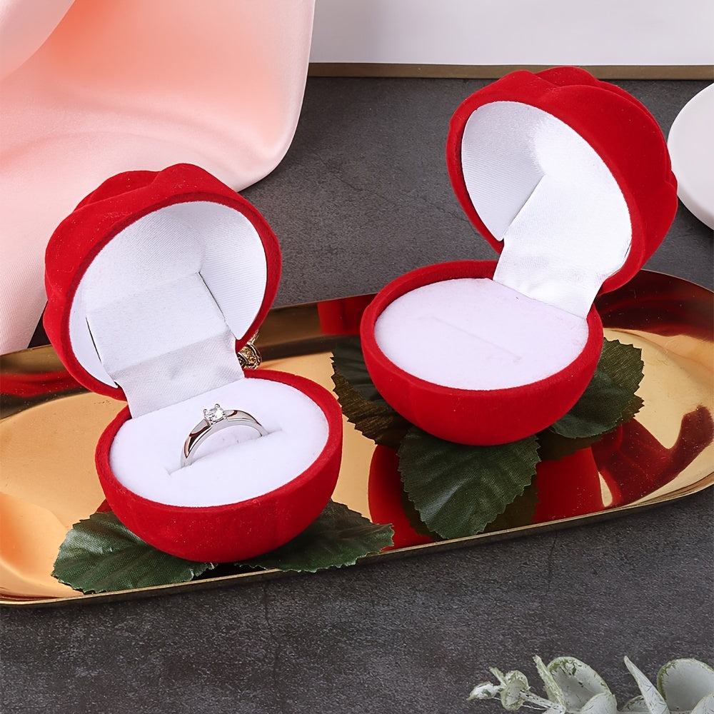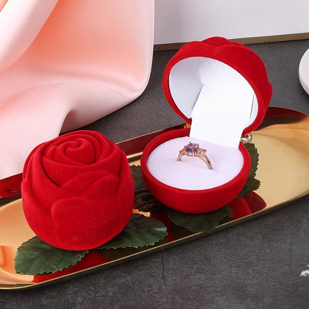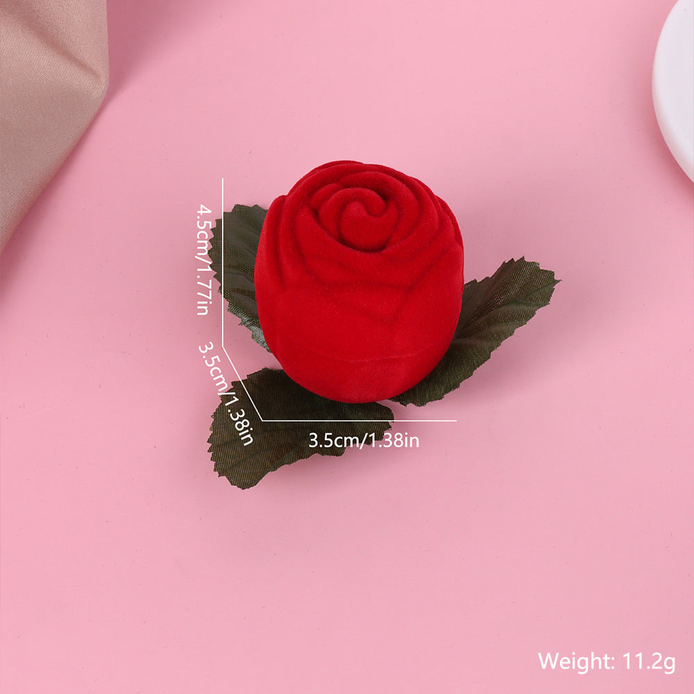 This elegant velvet ring box features a beautiful flower rose design, perfect for engagement or wedding rings.