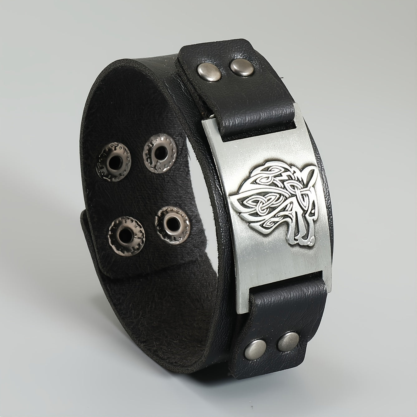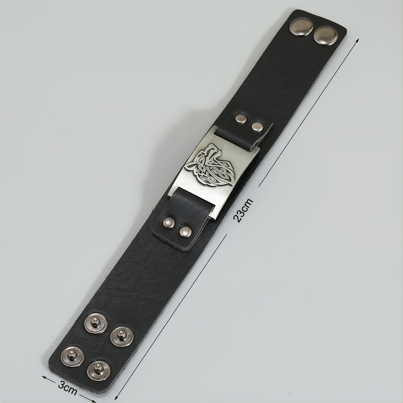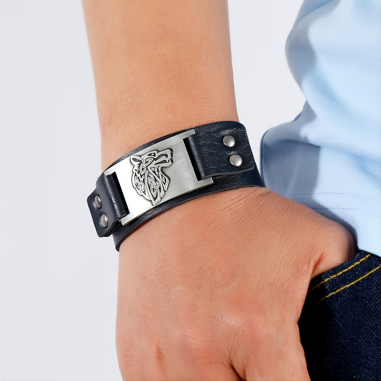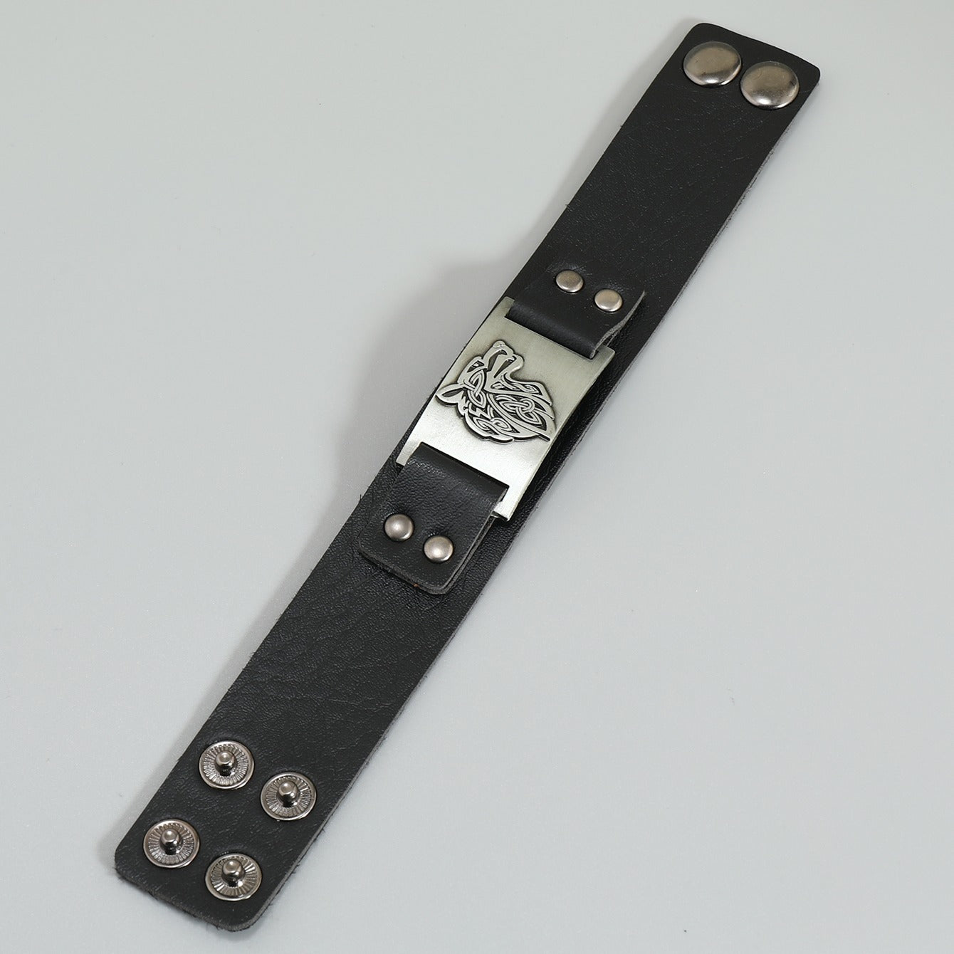 Embrace the spirit of the Viking era with this minimalist leather bracelet featuring a wolf head design.