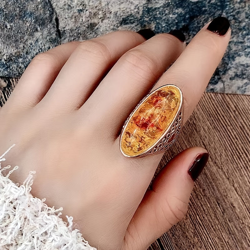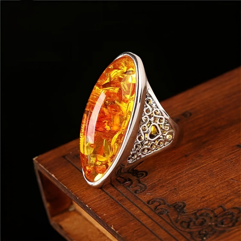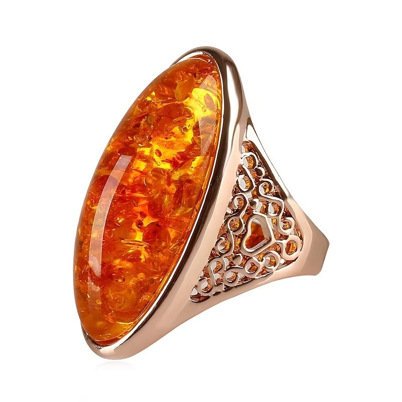 Elevate your look with this stunning vintage amber ring. Perfect for anniversary, birthday gifts, or evening parties. The 18k plated design exudes a noble charm.