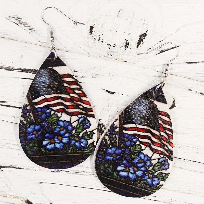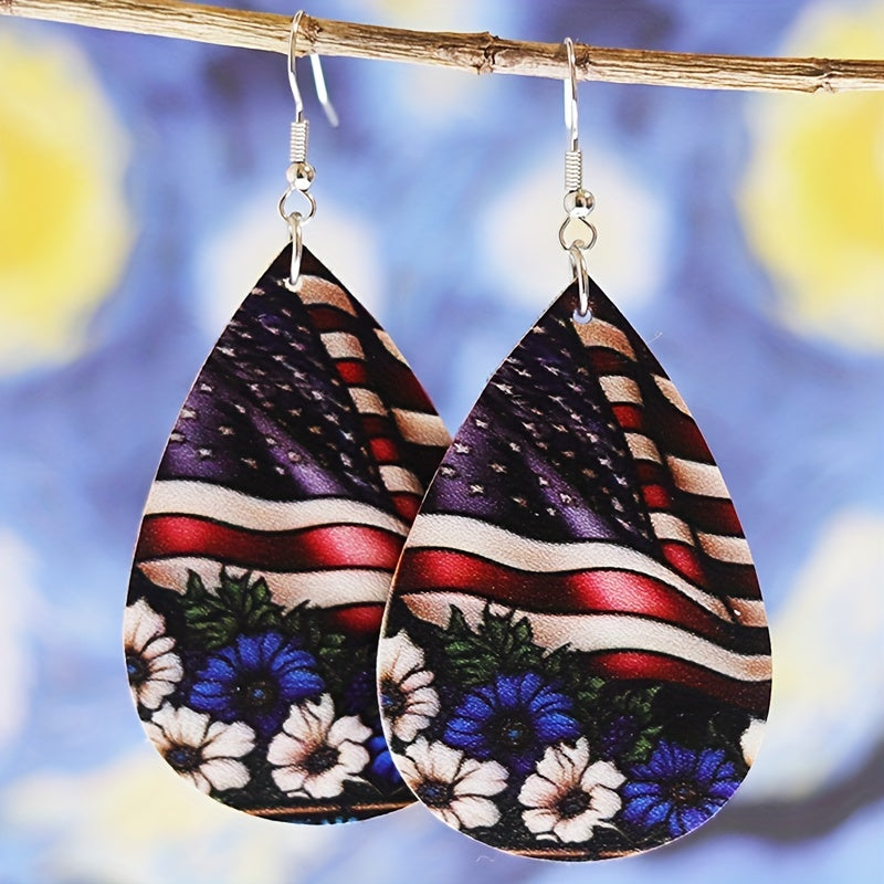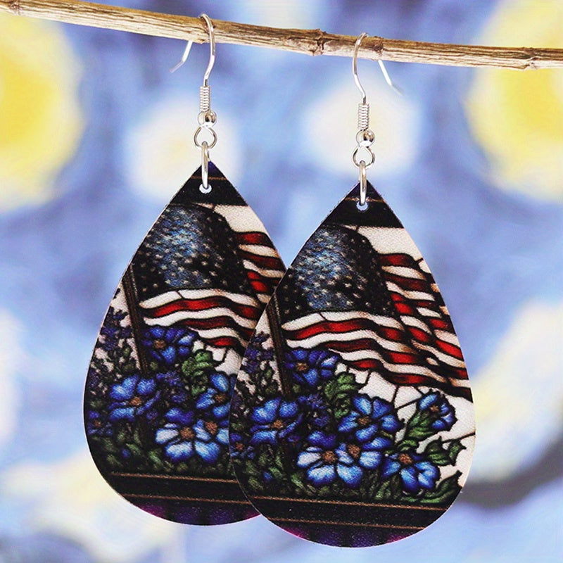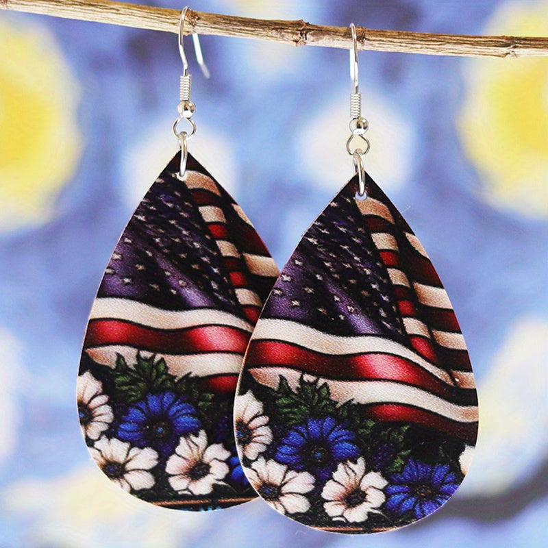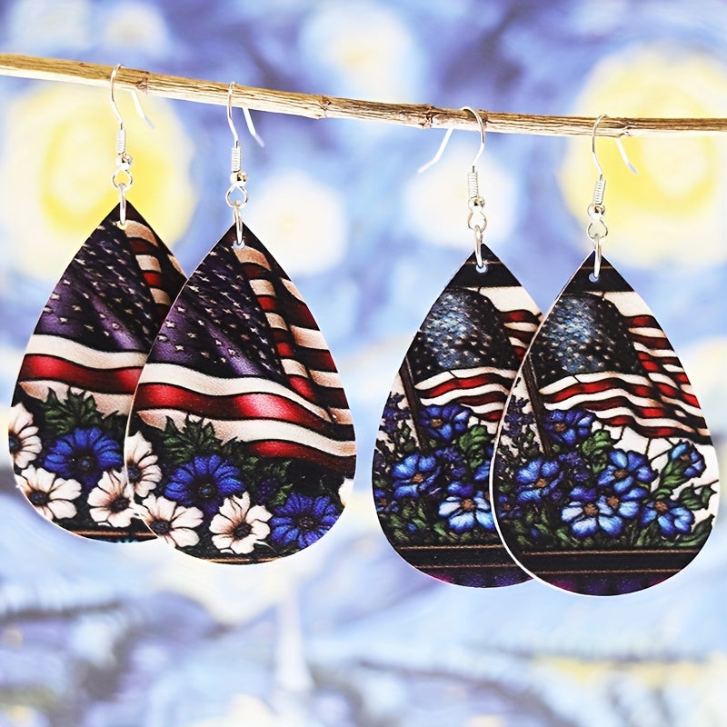 Show off your patriotic spirit with these distressed vintage American flag earrings. The small chrysanthemum print adds a delicate touch, making them a perfect gift for a female loved one.
