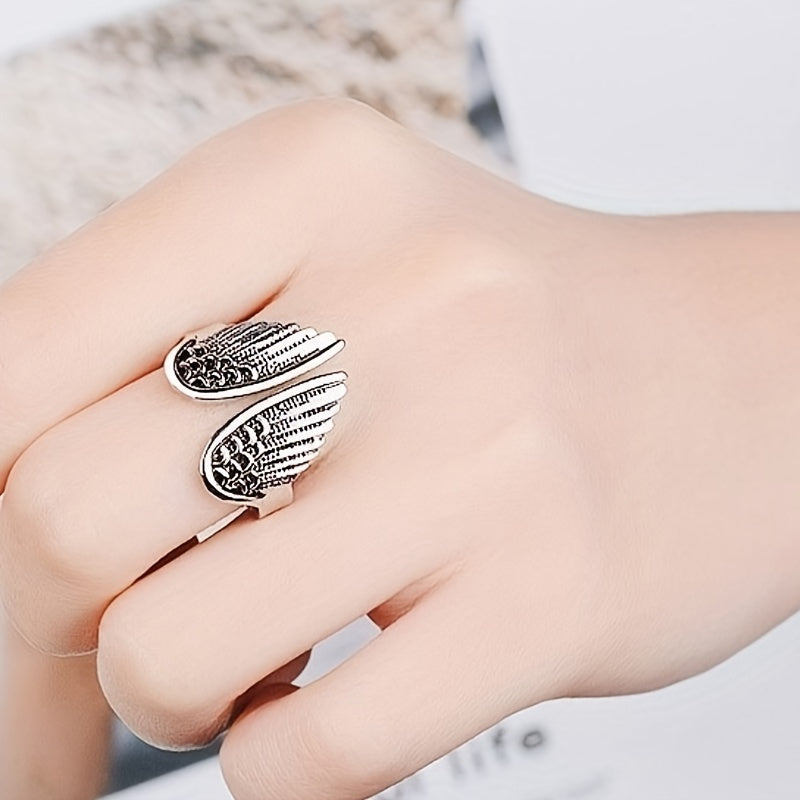 This vintage angel wings ring is a perfect couple ring with adjustable opening. Made of high-quality materials, it is unique and stylish.