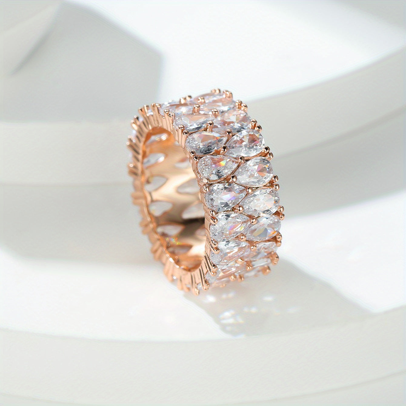 This vintage wedding ring features a double row design with water drop cubic zirconia stones, making it a beautiful accessory for women and girls. It is the perfect gift for those born in April.