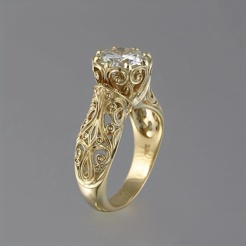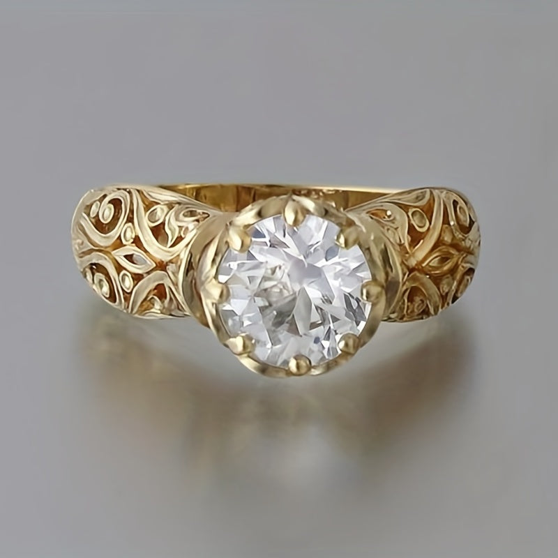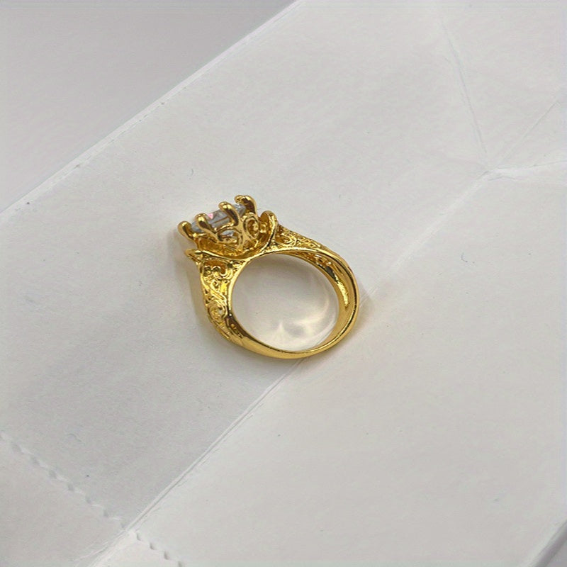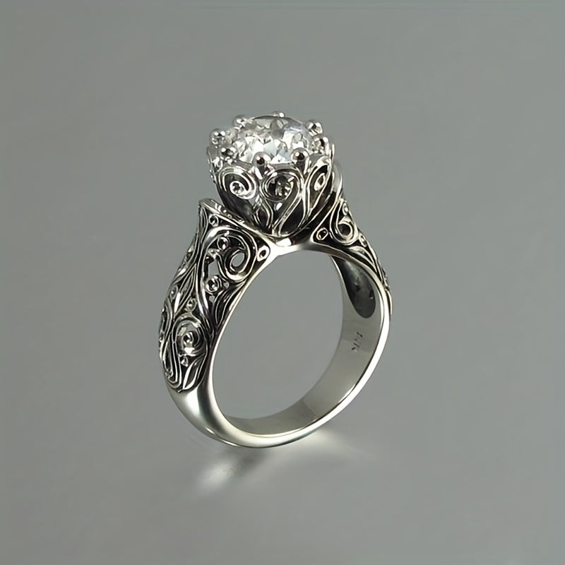 Add a touch of elegance to your look with this vintage-inspired artificial diamond hollow out flower ring. Perfect for couples or as a statement piece.