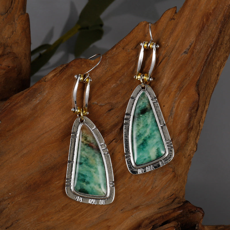 Add a touch of personality to your style with these vintage asymmetric two tone drop dangle earrings. Perfect for women who love punk style jewelry.