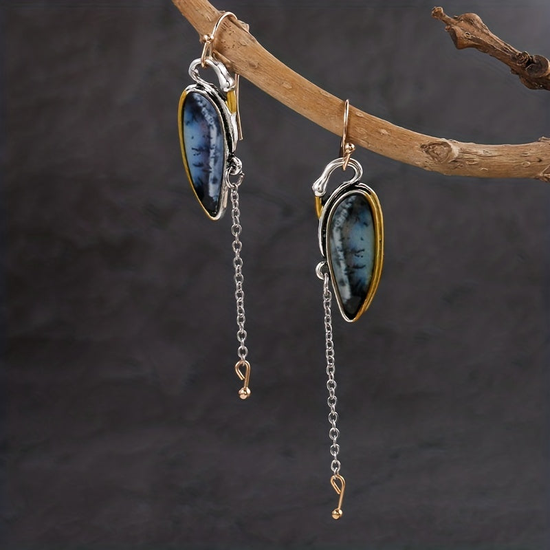 Add a touch of bohemian style with these vintage asymmetrical earrings featuring faux stone drops. Perfect for women and girls who love unique accessories.