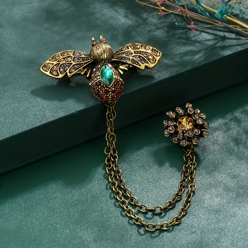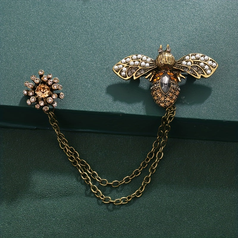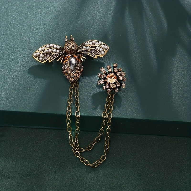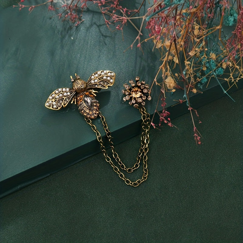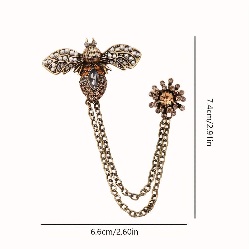 Add a touch of elegance to your outfit with this vintage bee brooch featuring a tassel chain and double pin buckle. Perfect for parties, proms, suits, cardigans, and other occasions.