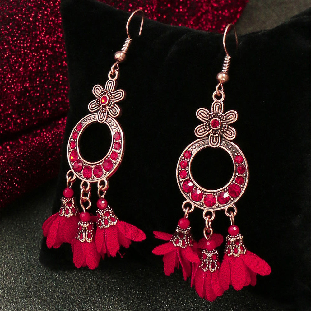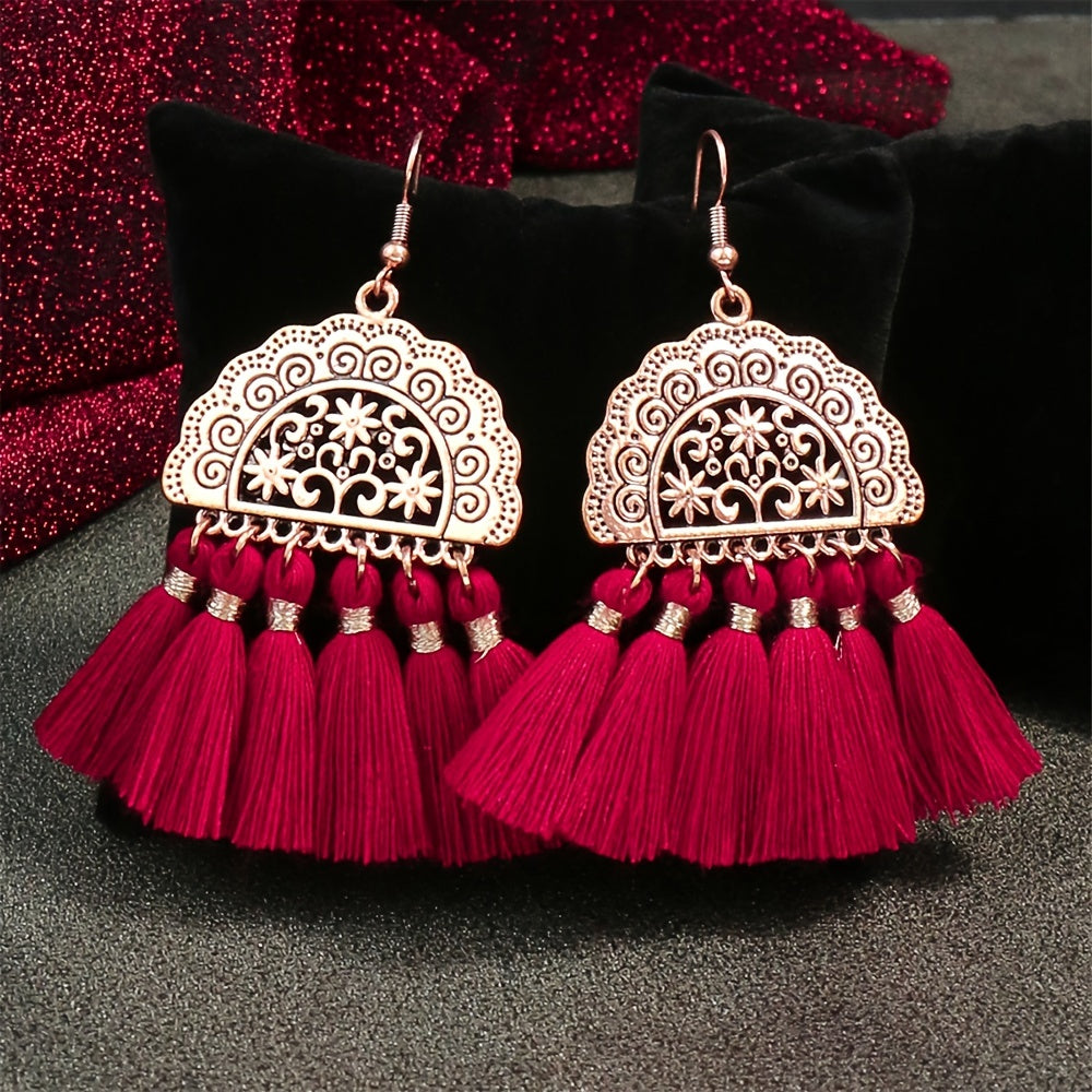 Vintage Boho Style Red Tassel Pendant Drop Earrings