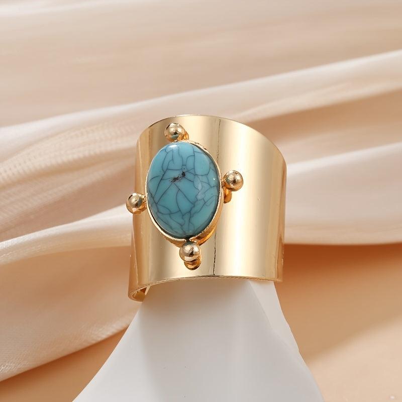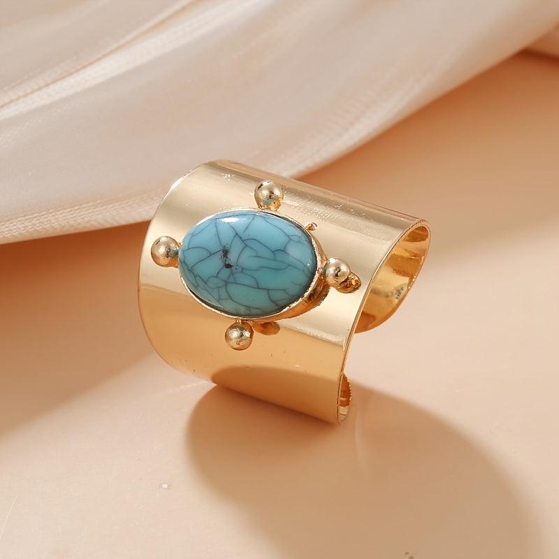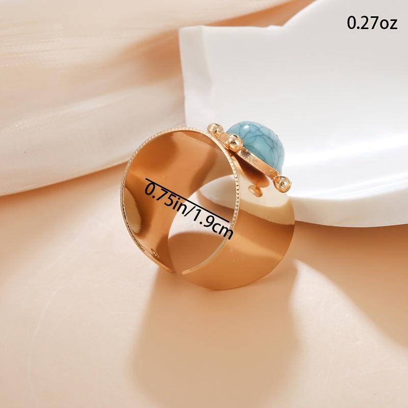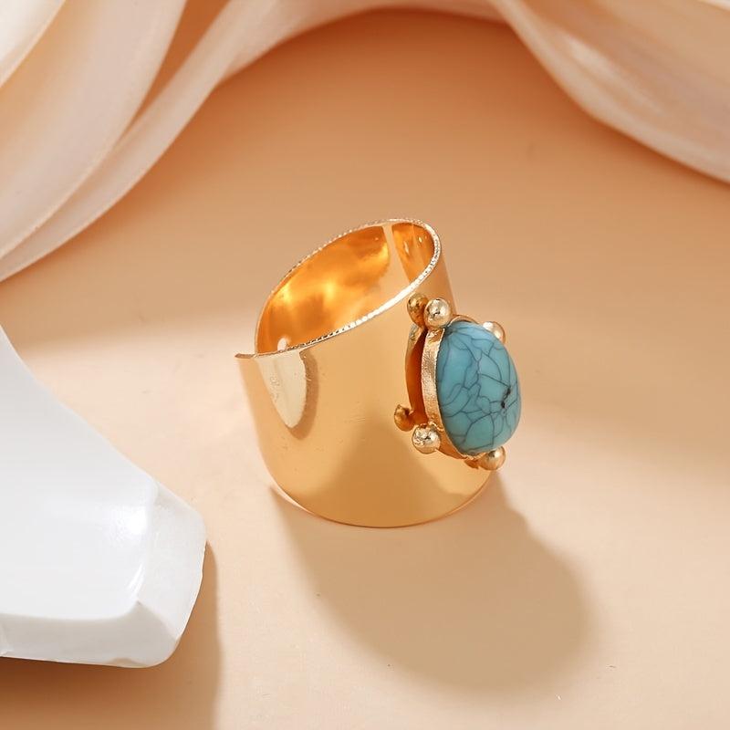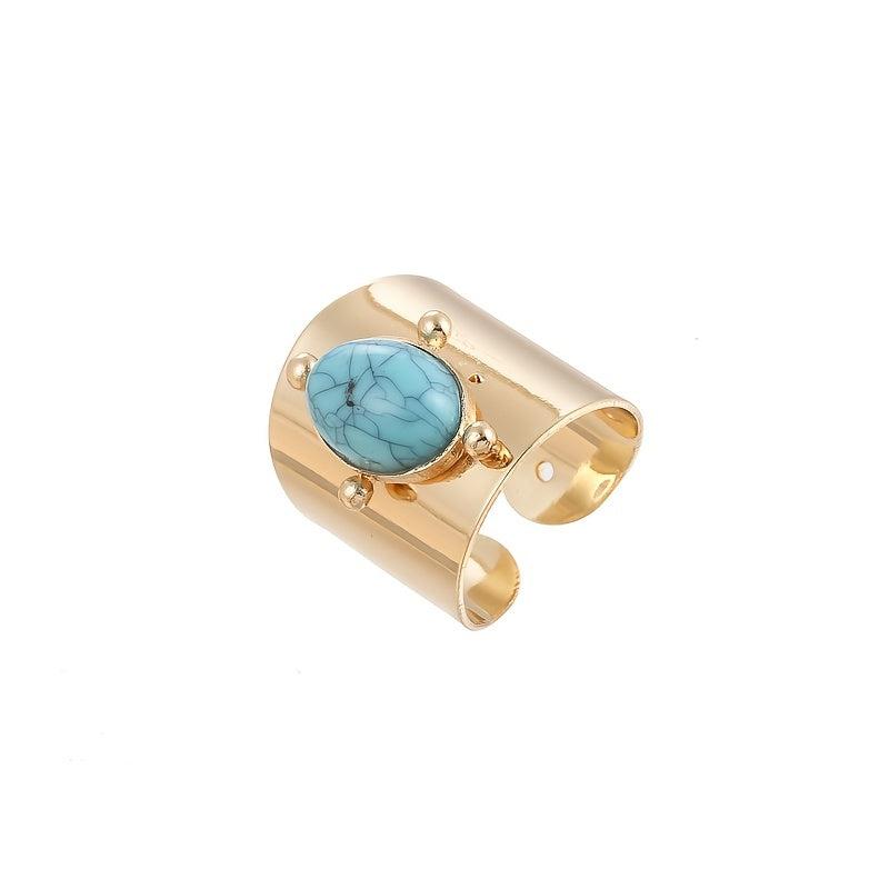 Add a touch of bohemian charm with this stunning turquoise open ring. Made with 18K gold plating, this adjustable ring is perfect for parties and holidays. It also makes a great gift for women and girls.