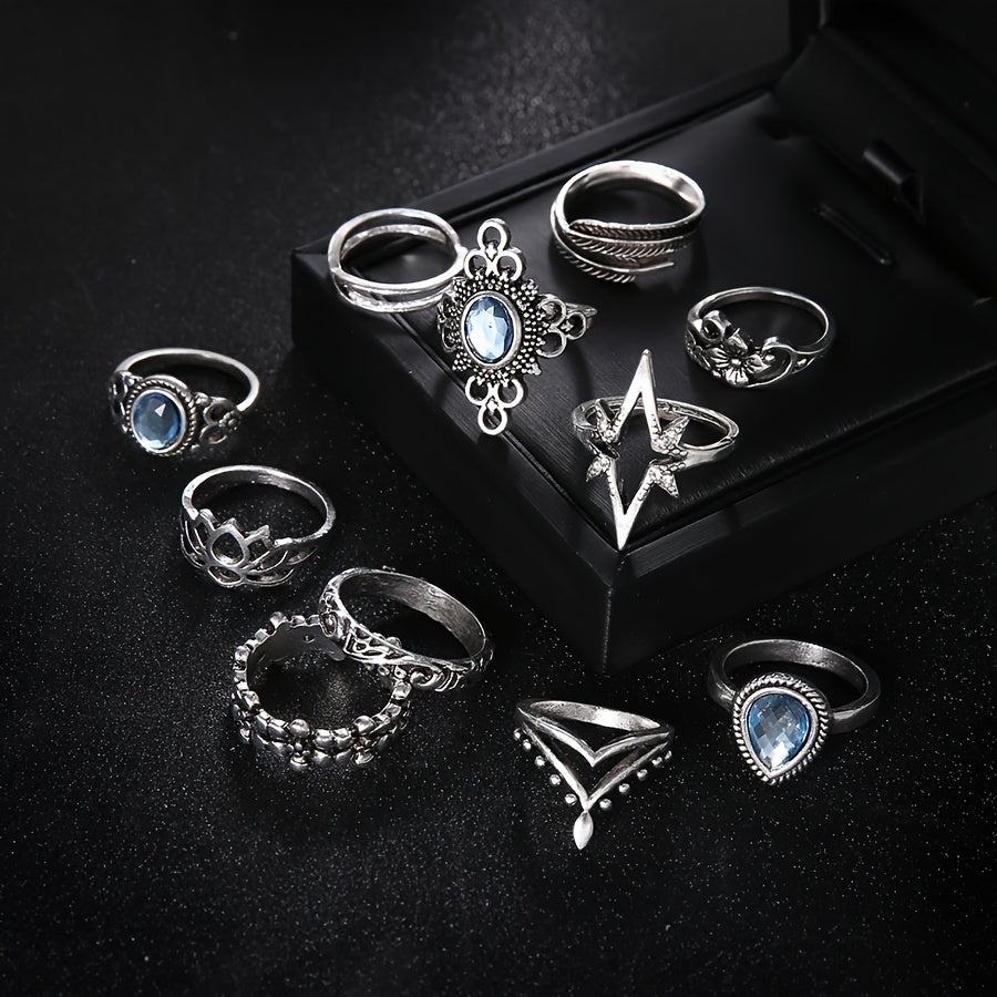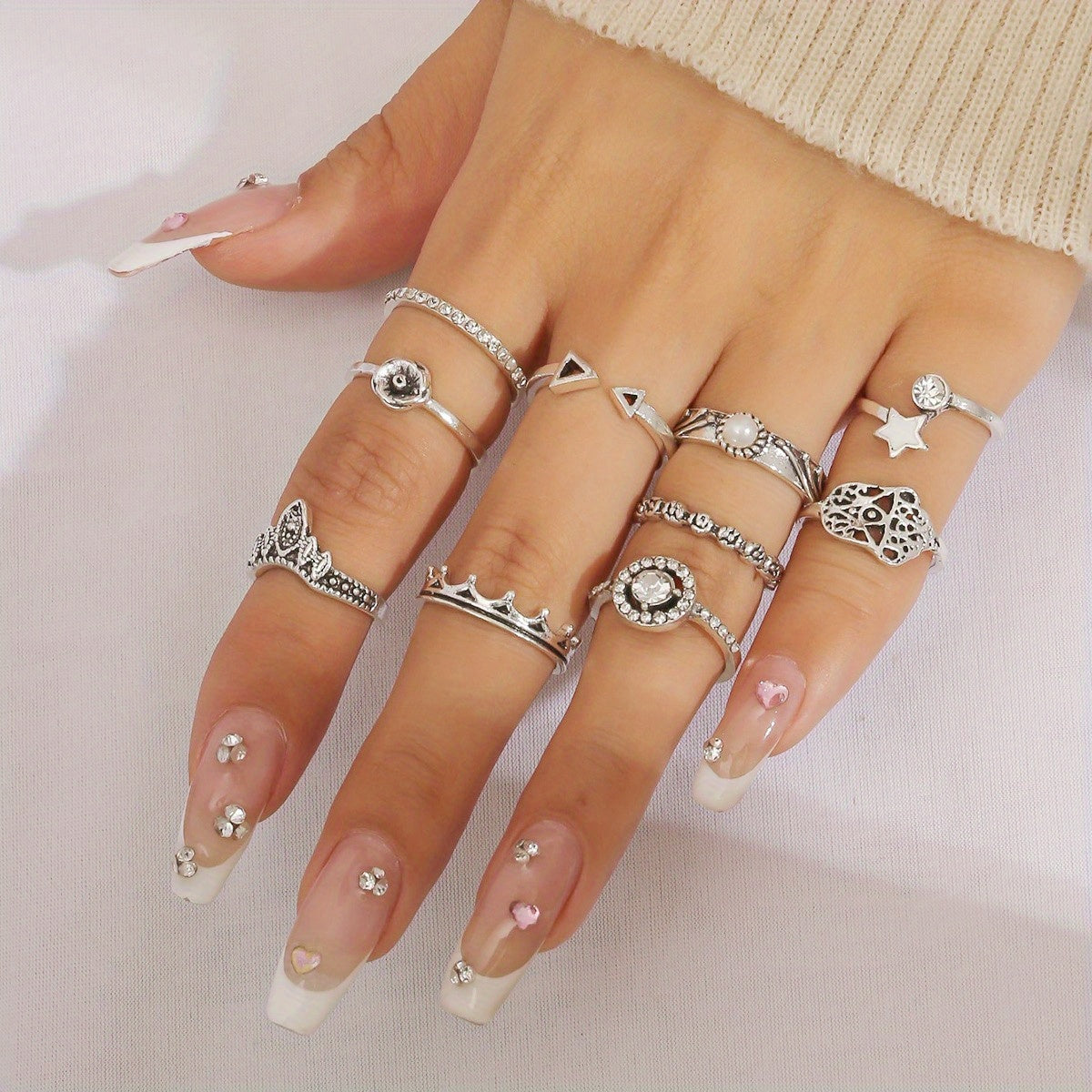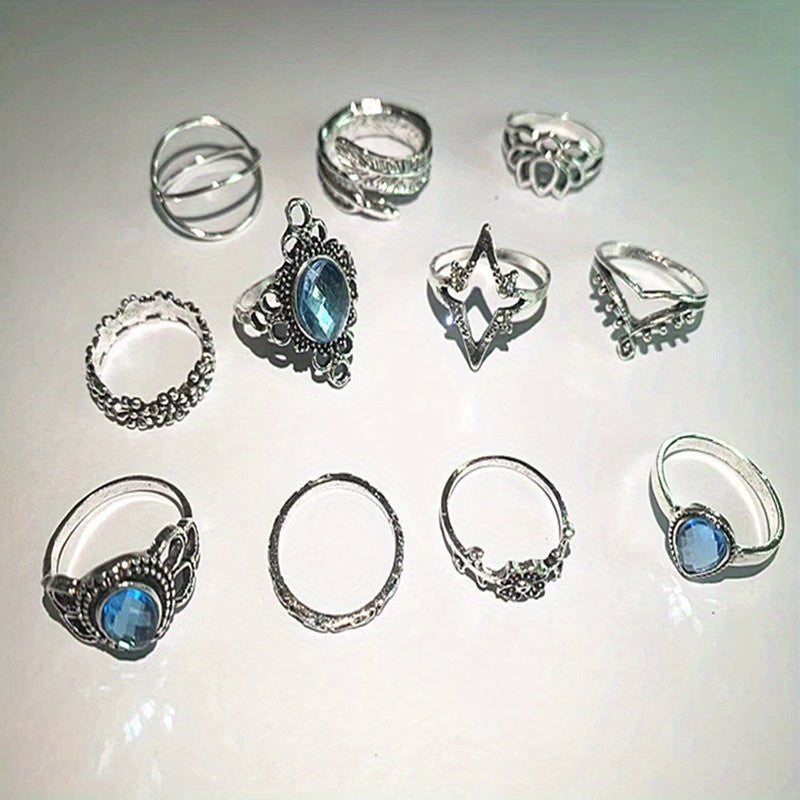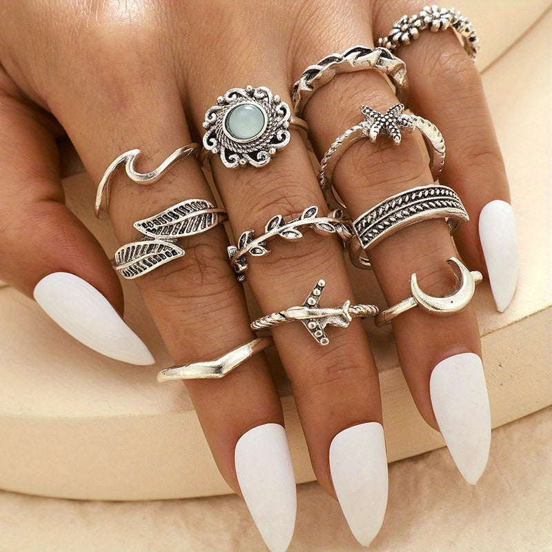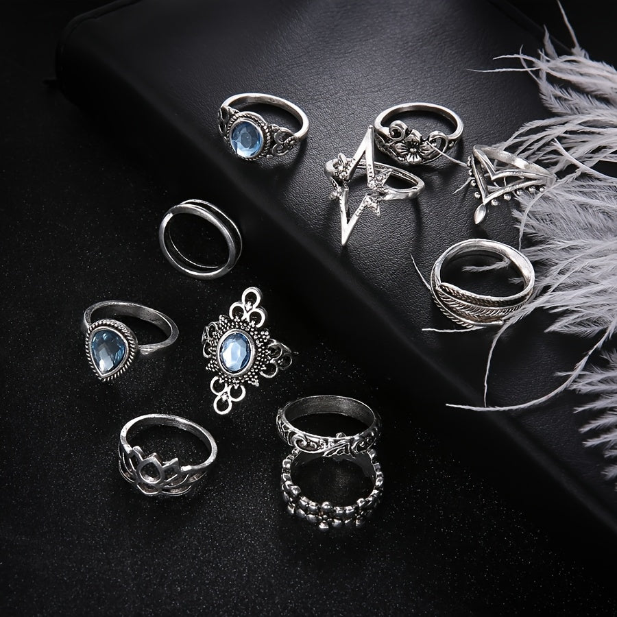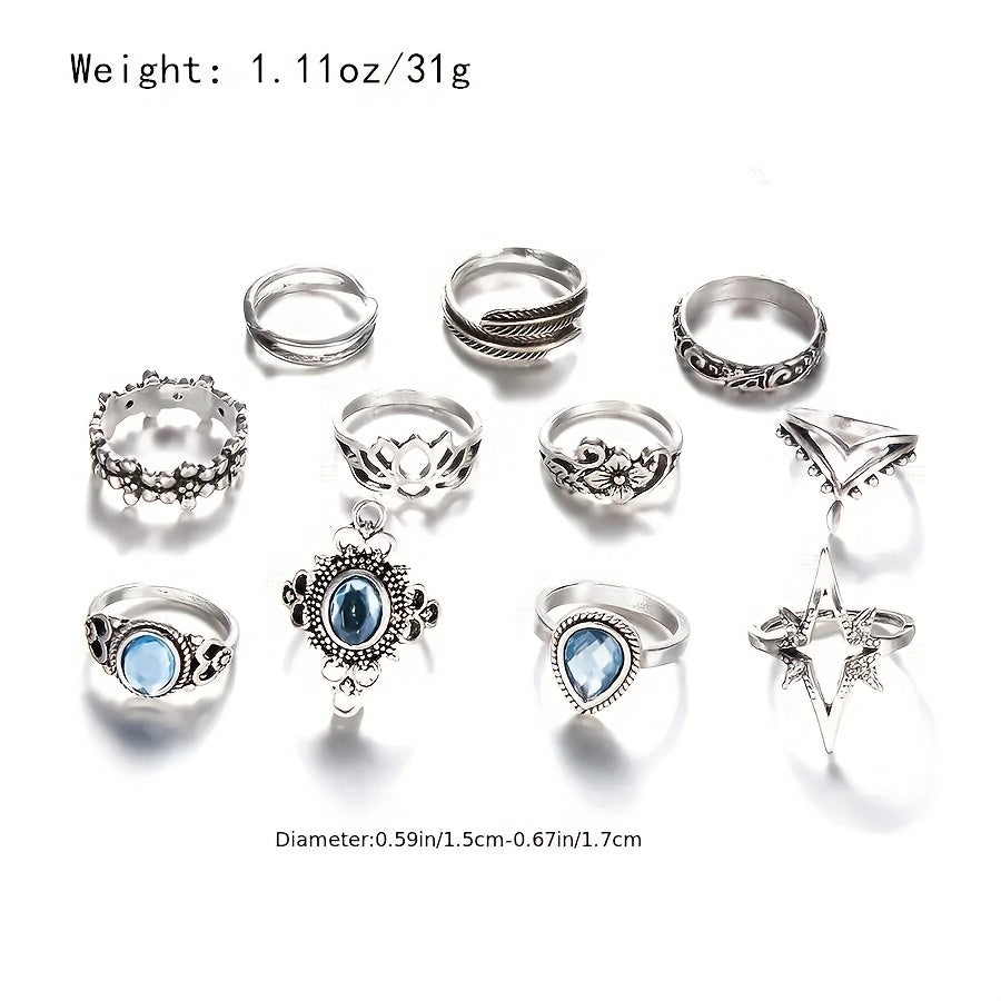 Add a touch of bohemian charm with this 11-piece combo set of carved star gemstone rings. Perfect for women and girls who love unique jewelry.