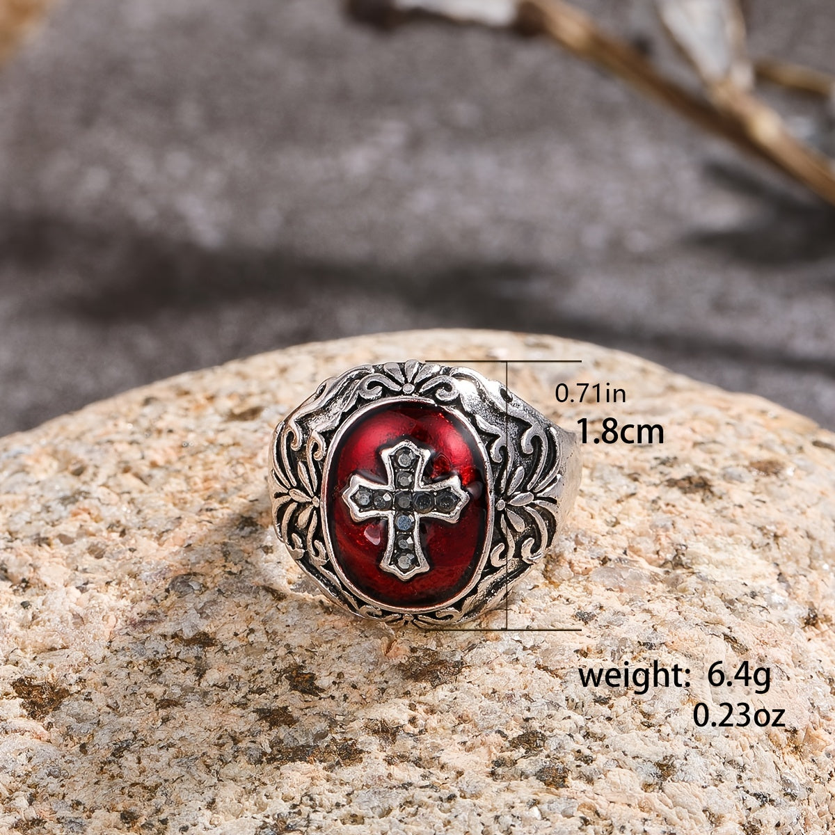 Vintage Cross Red Zircon Inlaid Ring Retro Men&