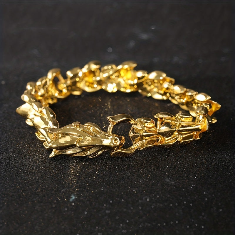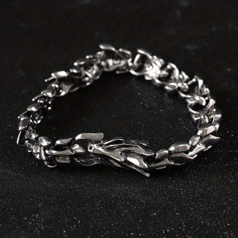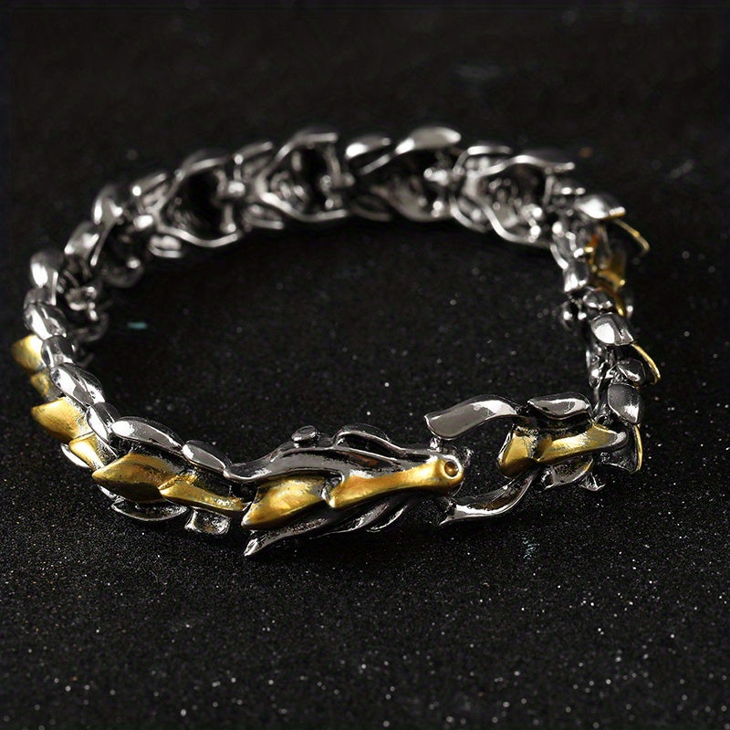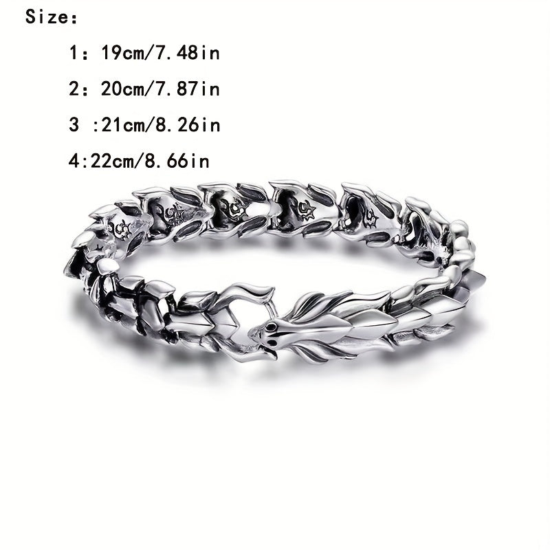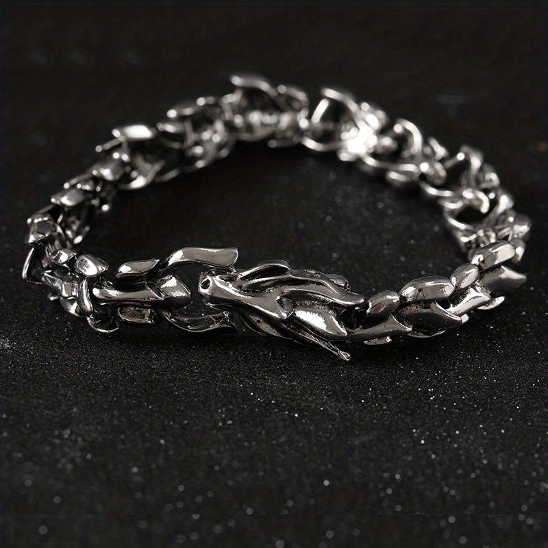 This vintage hip hop dragon bone bracelet features a dragon head pattern. Ideal gift for friends and brothers. Versatile and stylish accessory for any outfit.