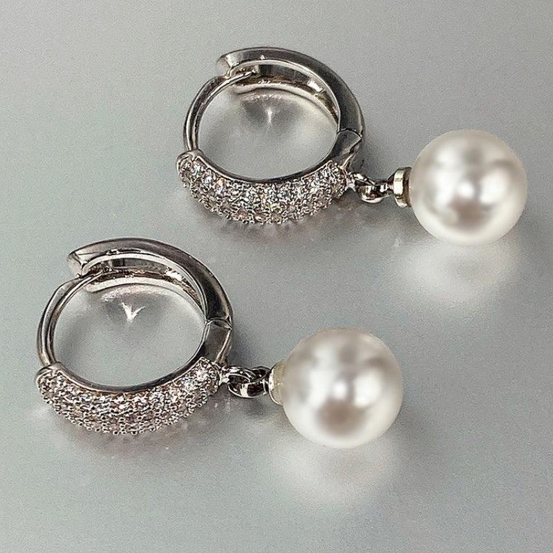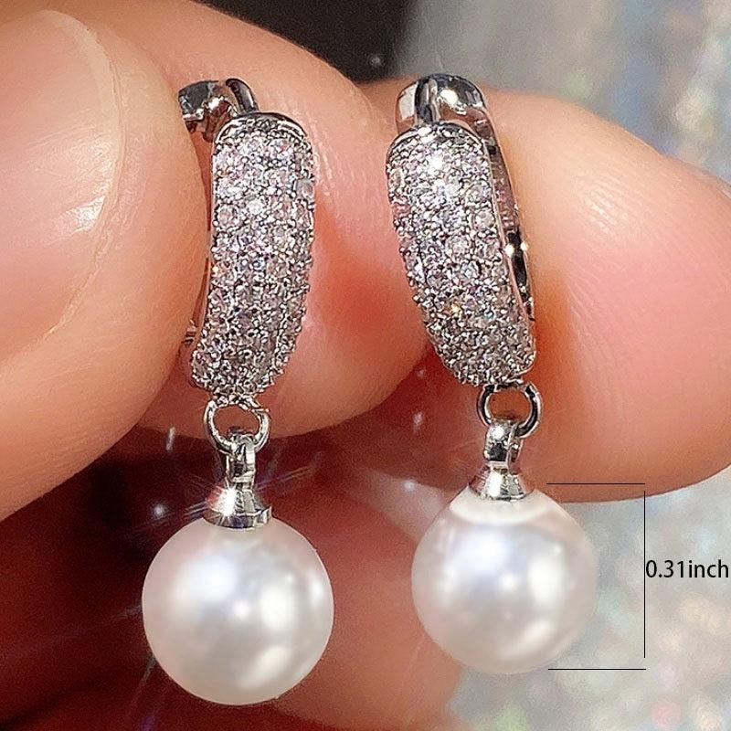 925 Silver Plated earrings with freshwater pearl drops and zircon stones, ideal for women's romantic wedding bridal jewelry.