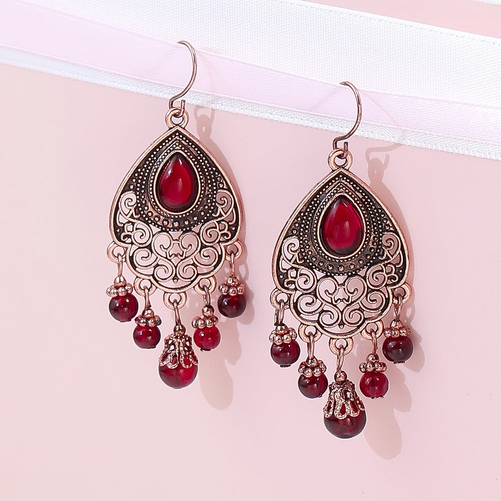 Vintage Geometric Cut Out Pine Stone Tassel Earrings