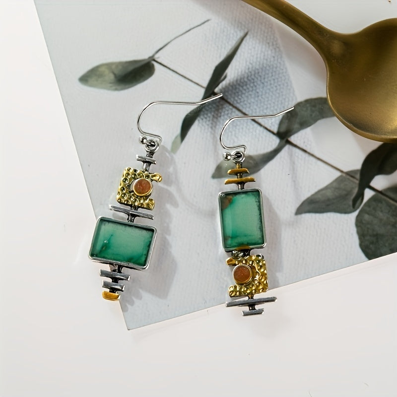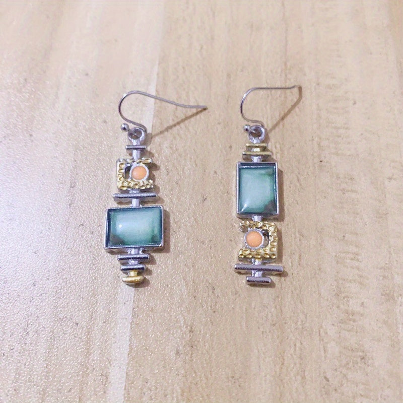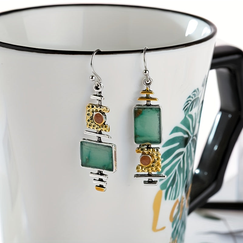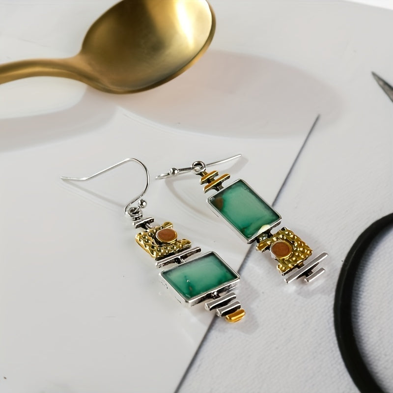 Add a touch of vintage charm to any outfit with these geometric drop hook earrings. Perfect for weddings, engagements, or anniversary gifts.