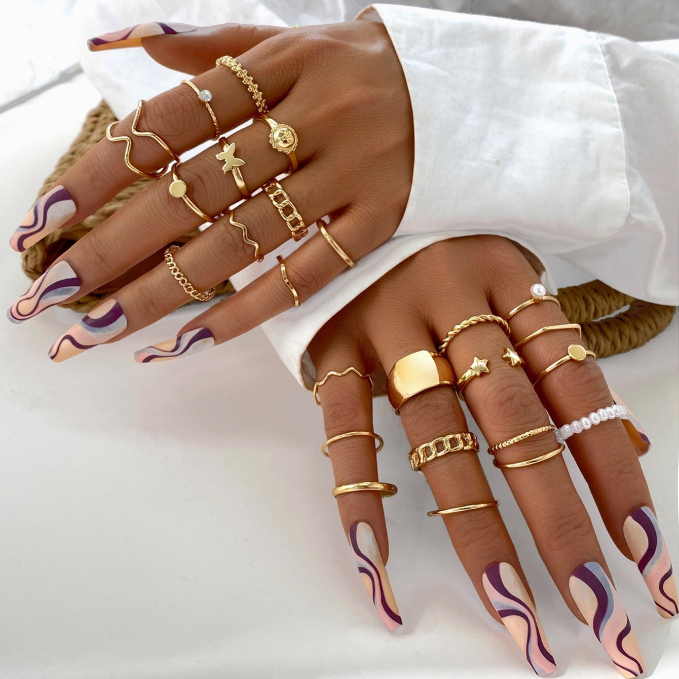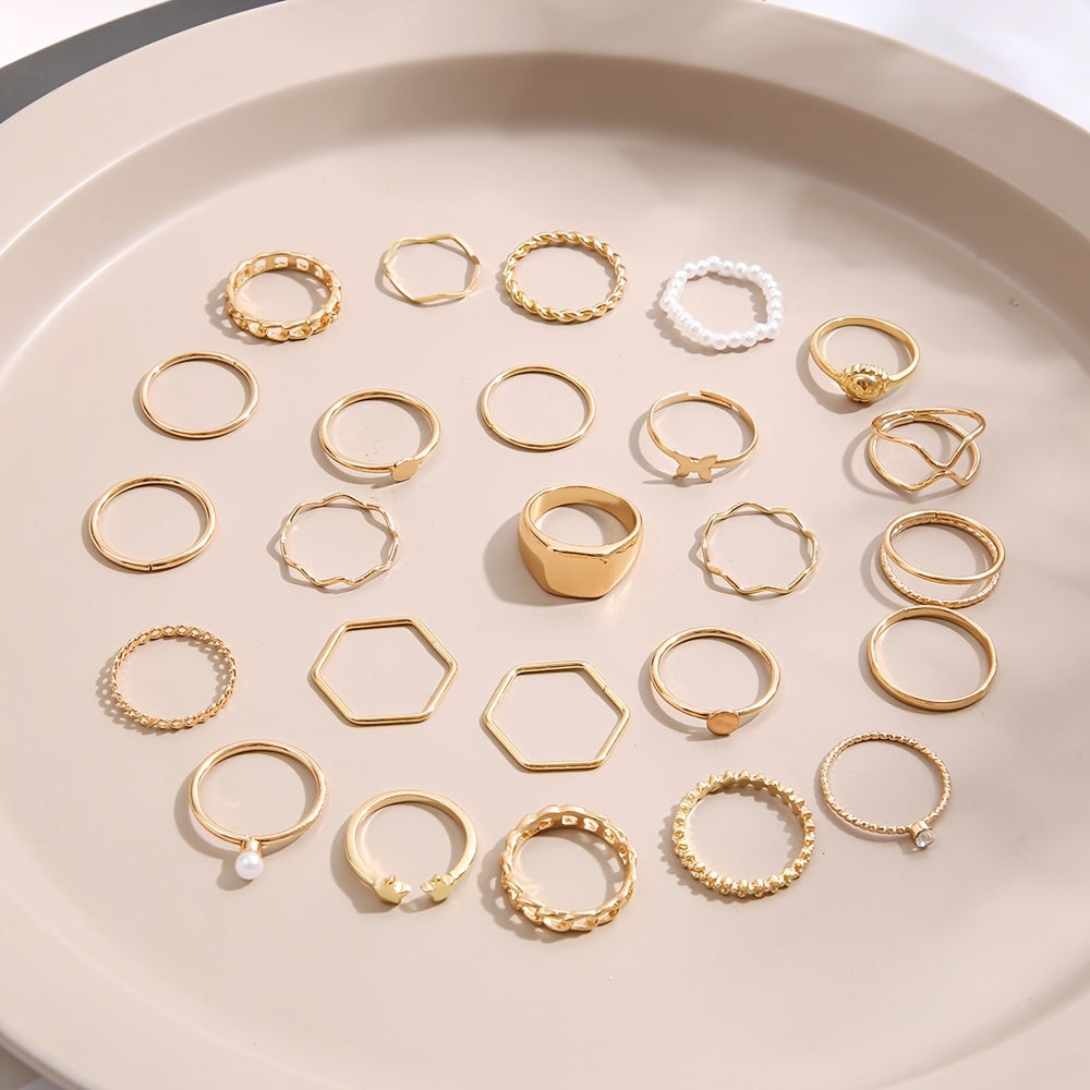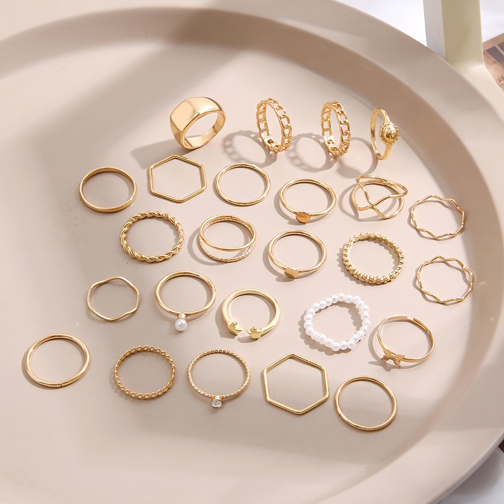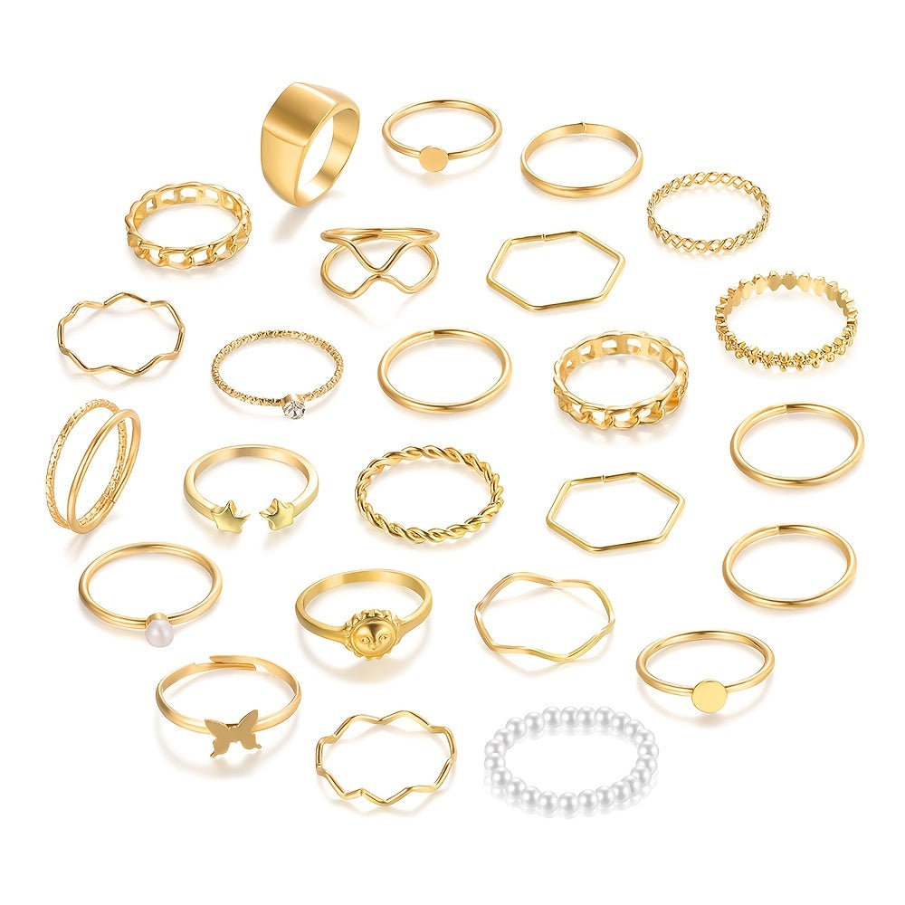 Add a touch of retro style with this 25pcs set of vintage geometric knuckle stackable rings. Perfect for stacking or wearing individually.