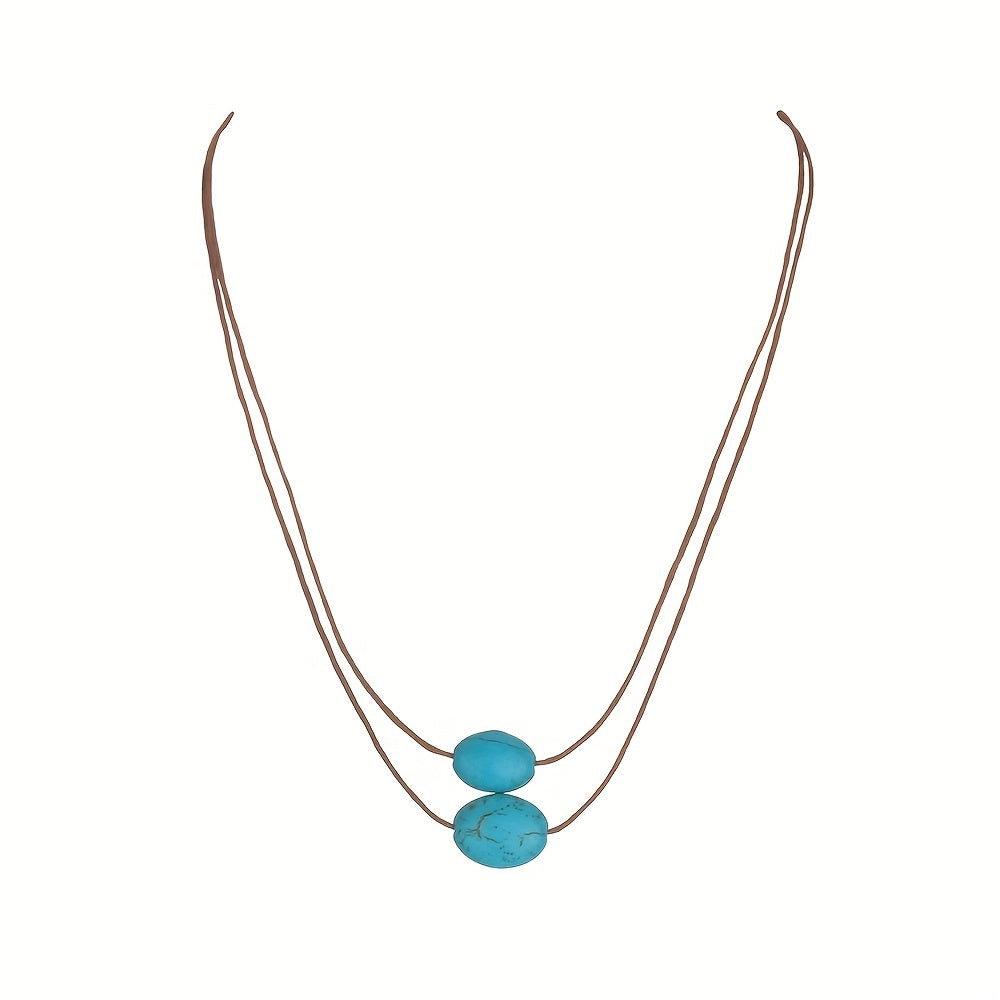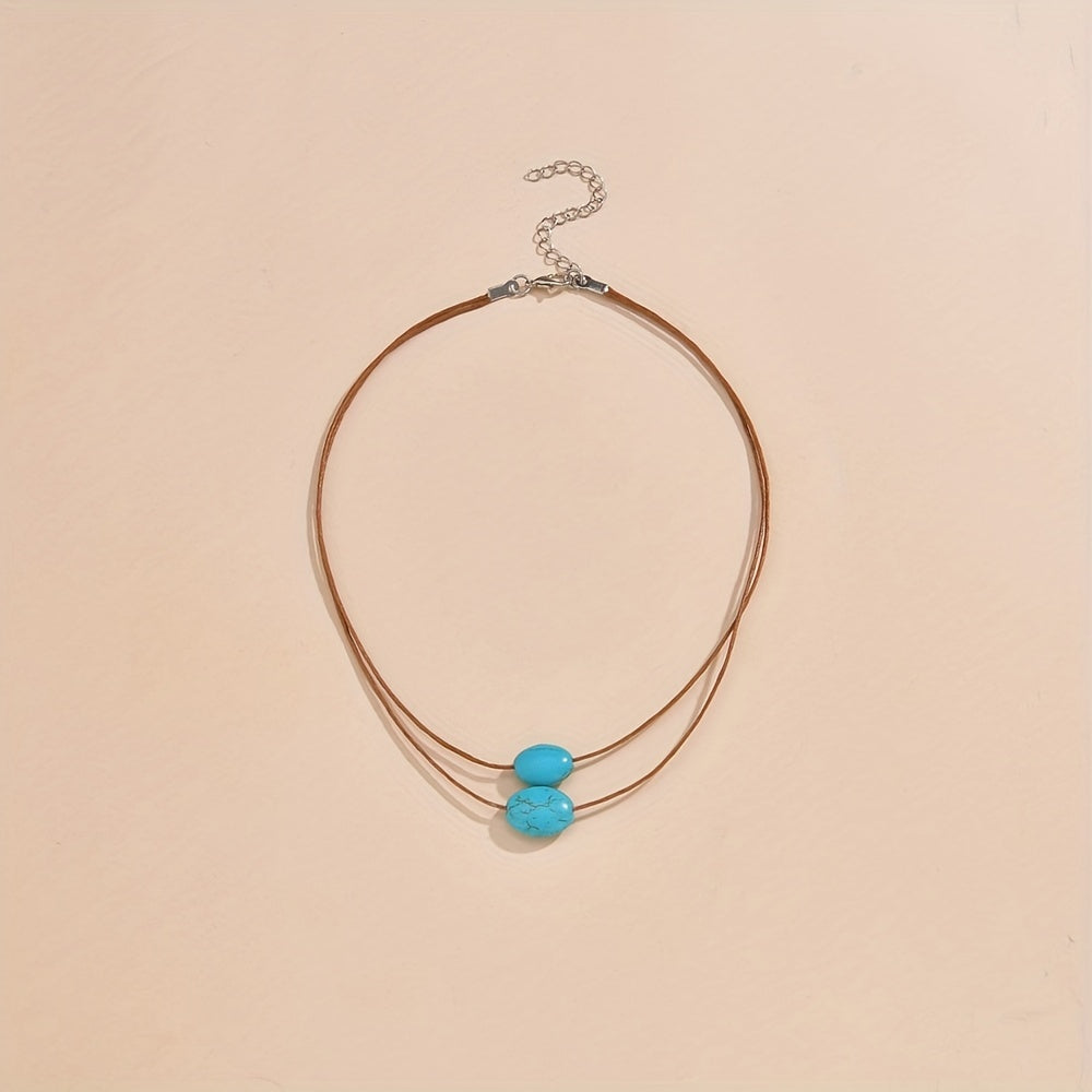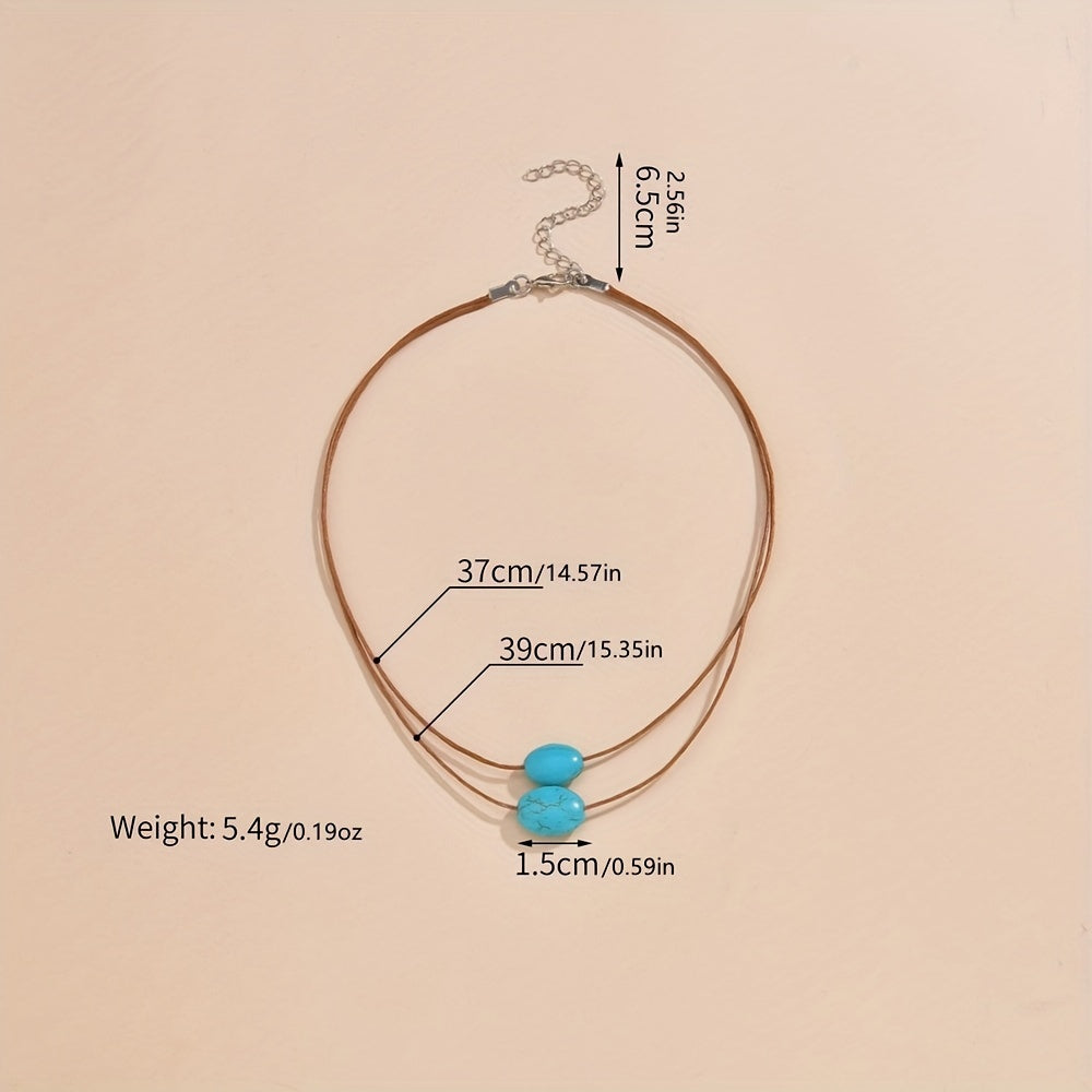 Elevate your style with this stunning vintage oval turquoise pendant clavicle chain. The double layer design adds a fashionable touch to any outfit.