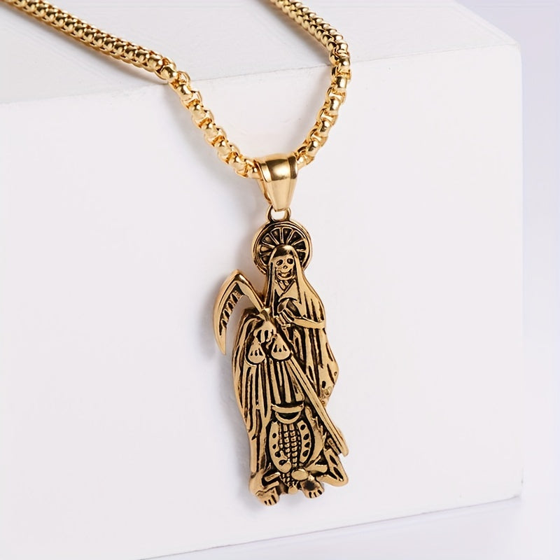 Vintage Golden Holy Saint Skull Pendant Necklace