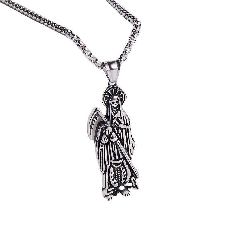 Embrace gothic hip hop style with this vintage stainless steel pendant necklace featuring a skull design. Perfect for men and women to accessorize for Halloween or daily wear.