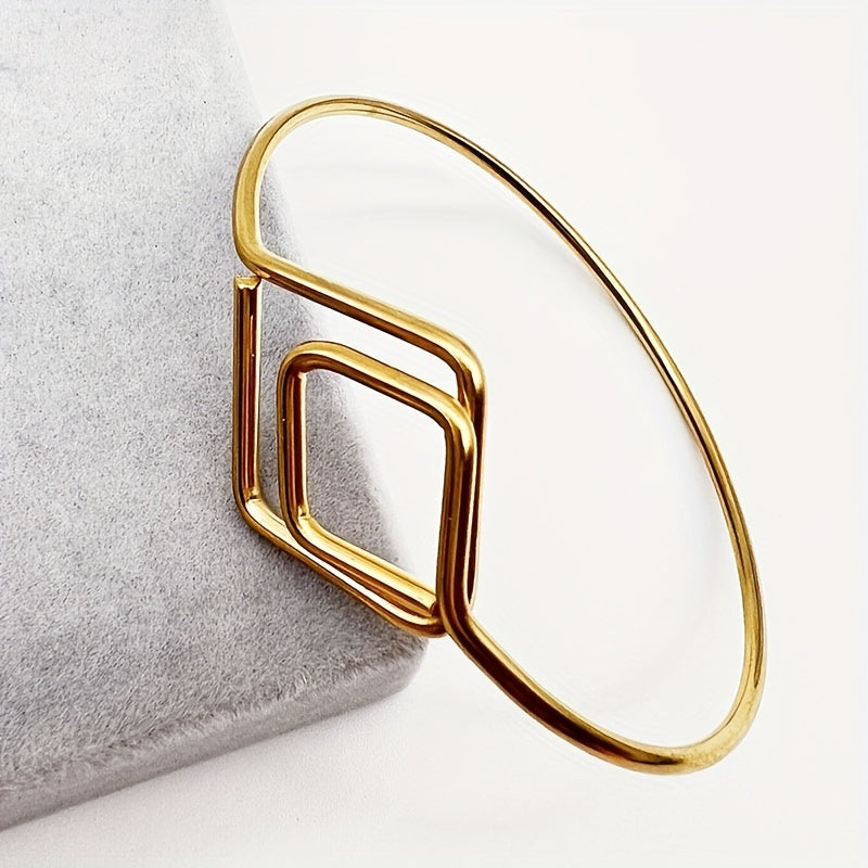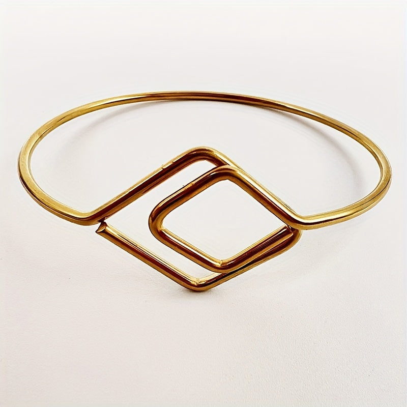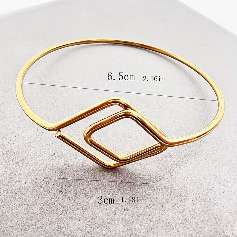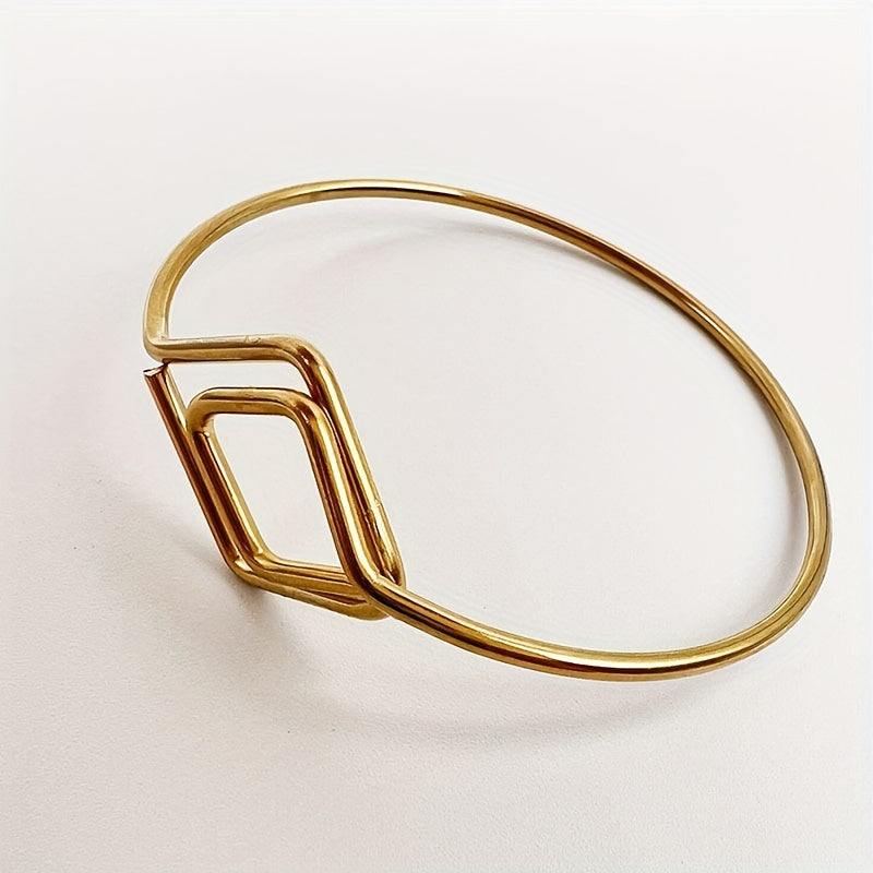 This vintage style golden stainless steel bangle features a quadrangle rhombus design with wire opening. Ideal for DIY jewelry making projects.
