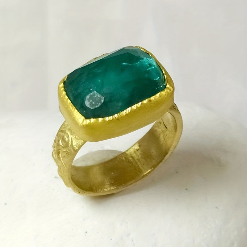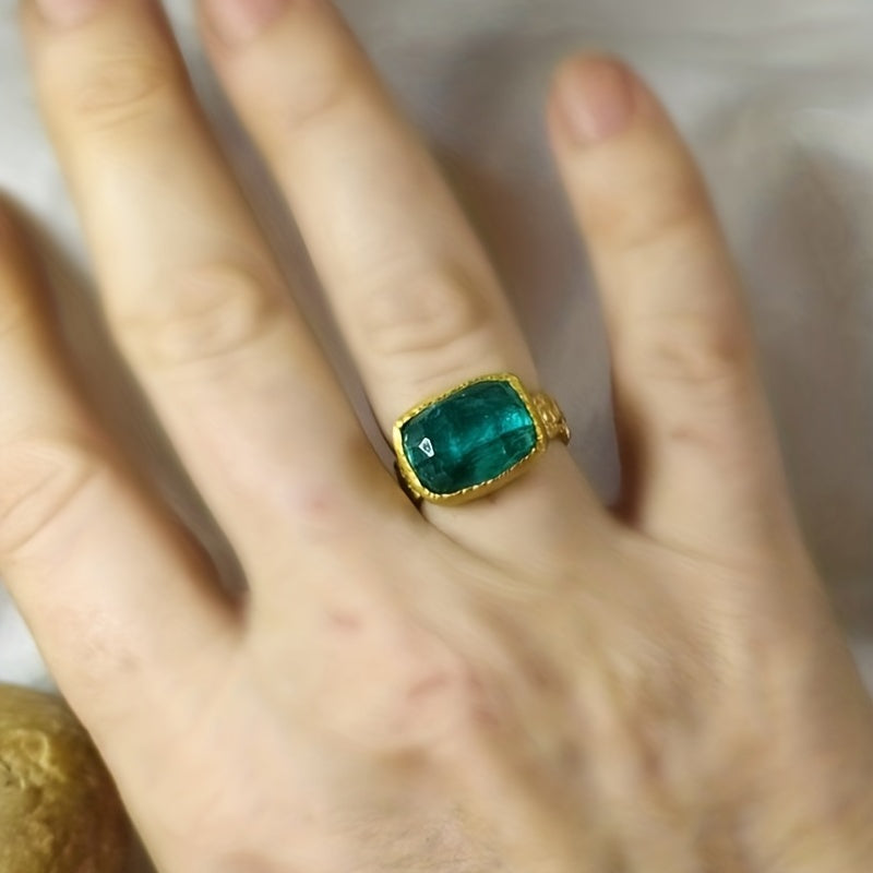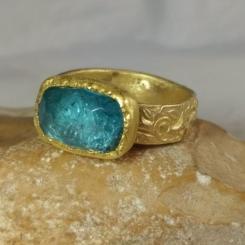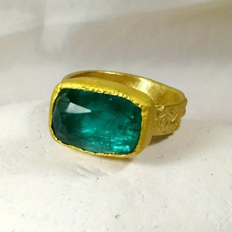 Elegant men's ring featuring a green tourmaline stone set in a tribal-inspired pattern. Perfect for adding a unique touch to your style.