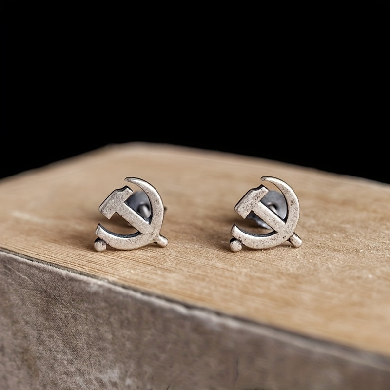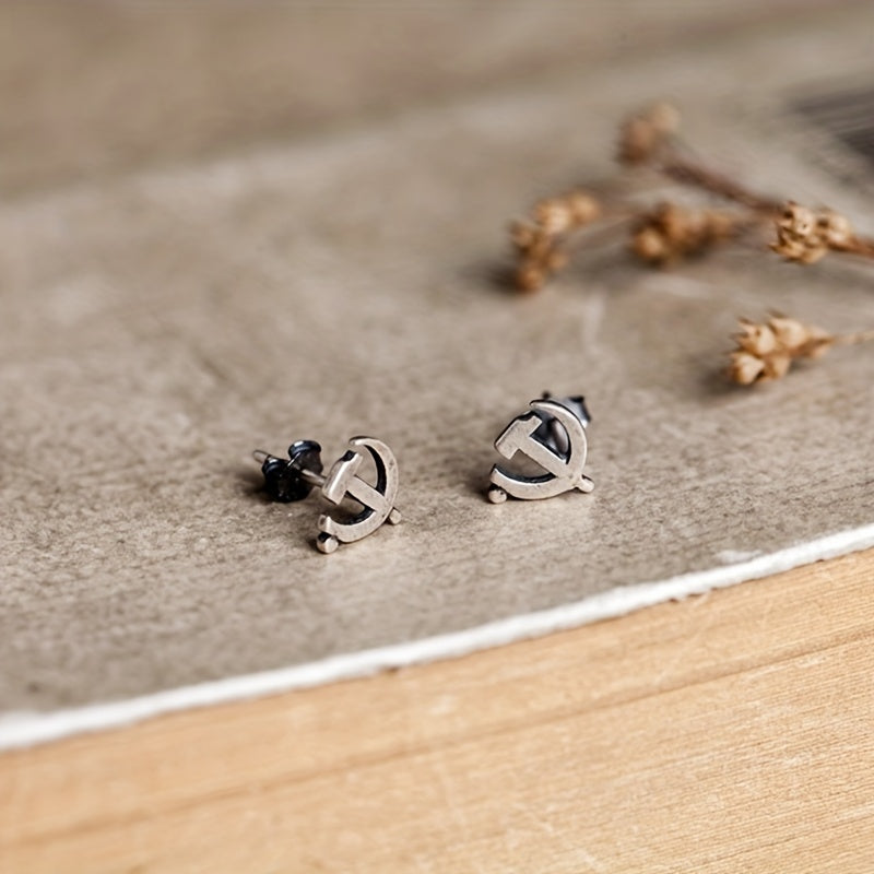 These hammer and sickle shape earrings are a unique and stylish accessory. Made of retro silver, they suit both men and women. Perfect for casual wear or as a thoughtful gift.