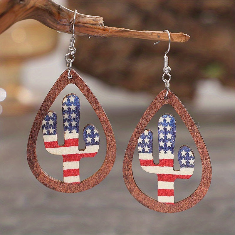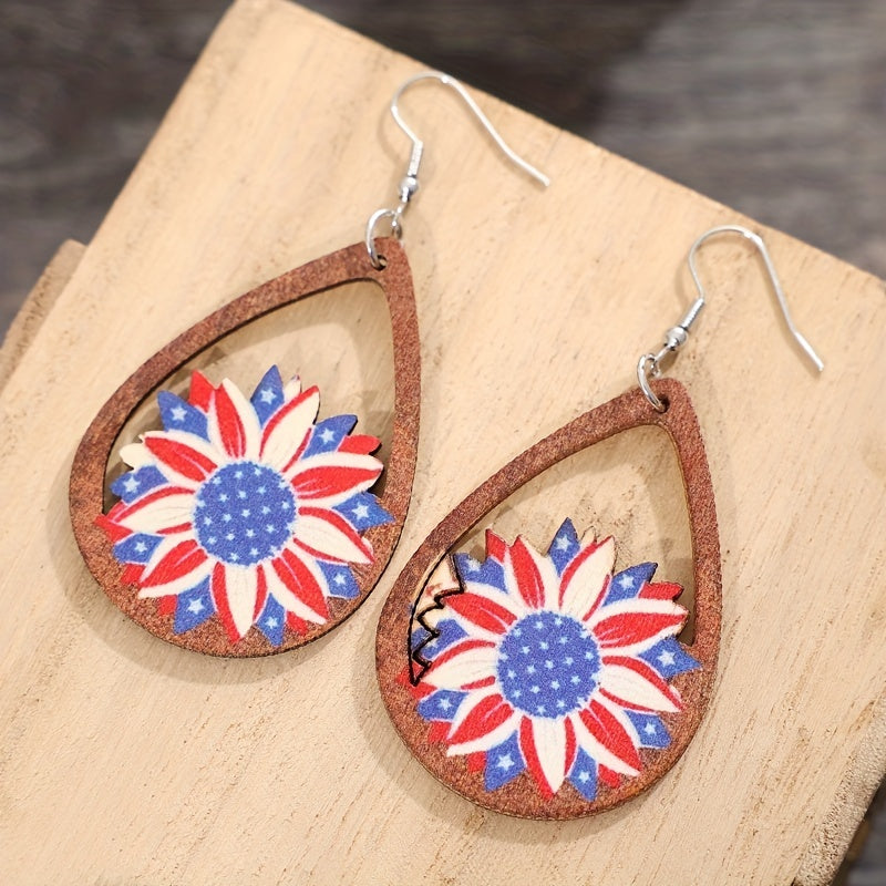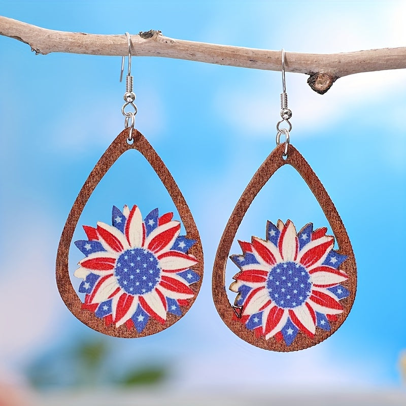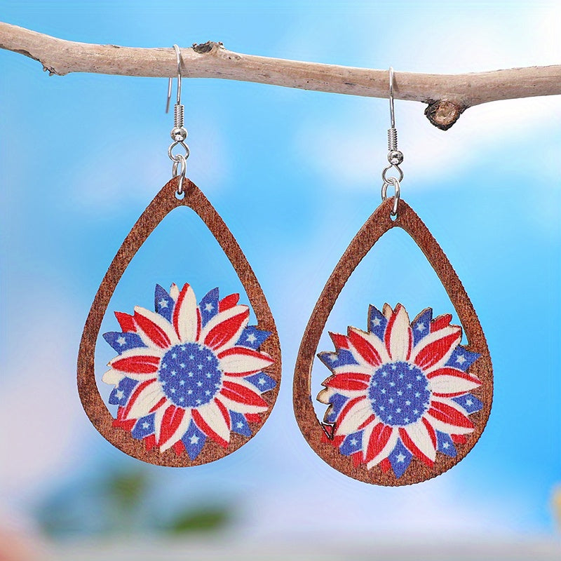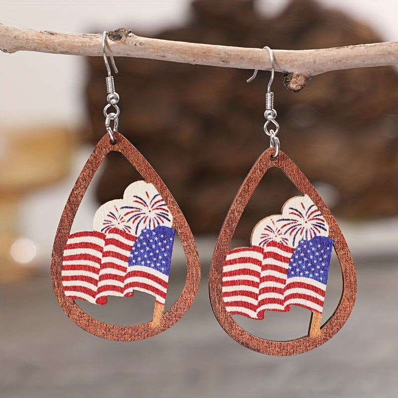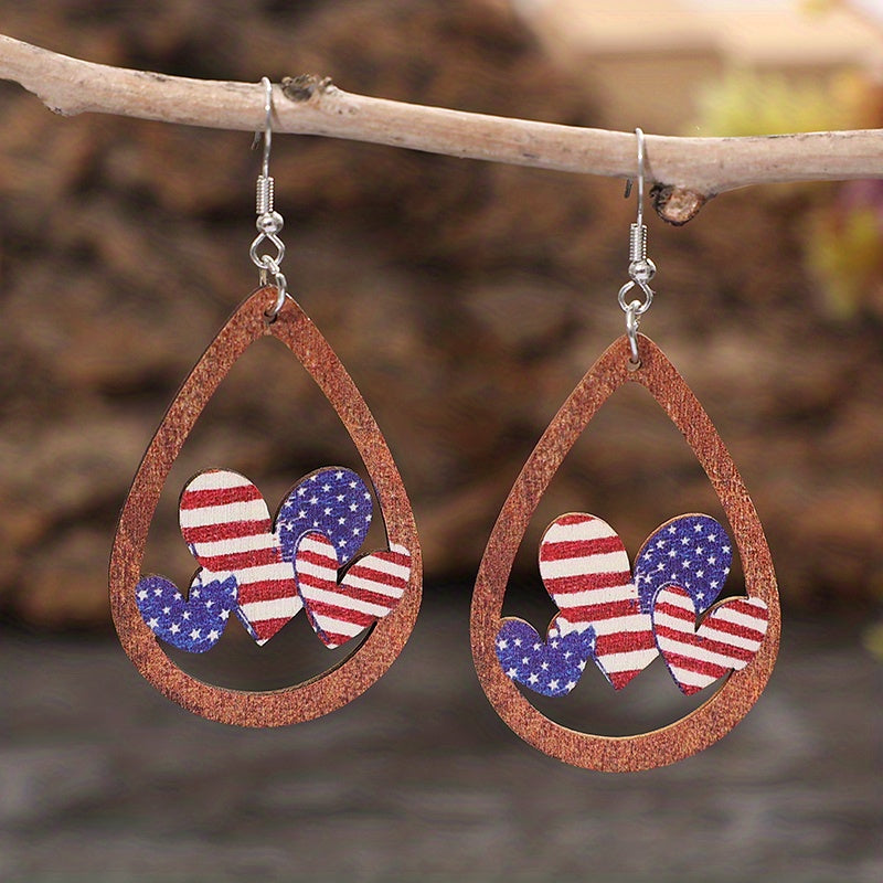 Add a touch of independence to your look with these retro ethnic style earrings featuring an American flag heart design. A perfect gift for women who love unique jewelry.