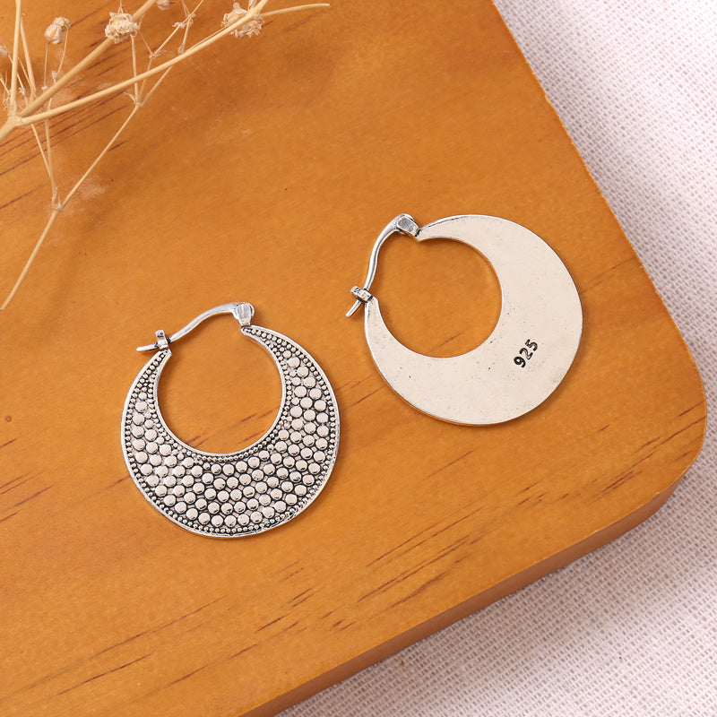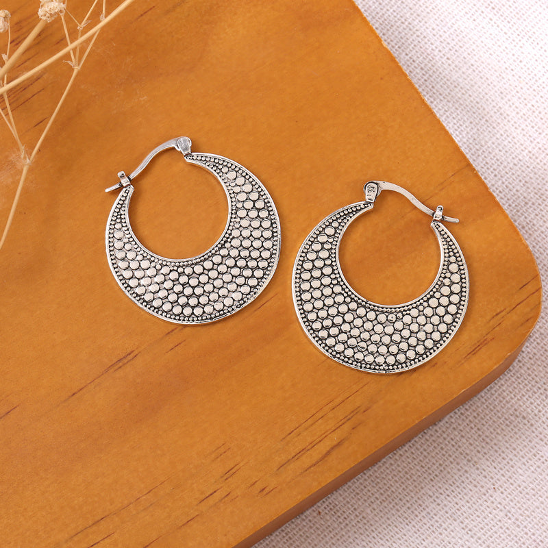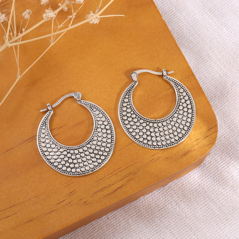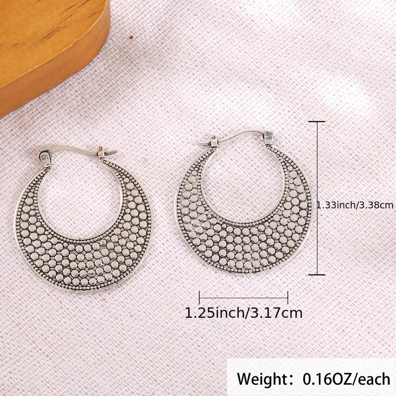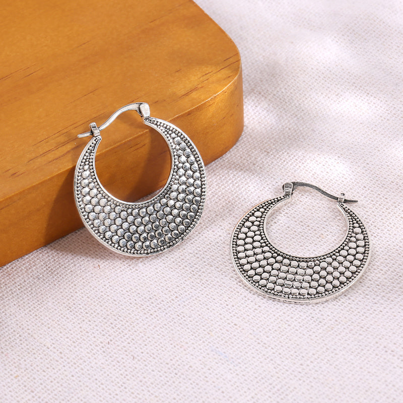 Vintage Hoop Earrings Engraved Pattern Drop C Shape Sweet Jewelry