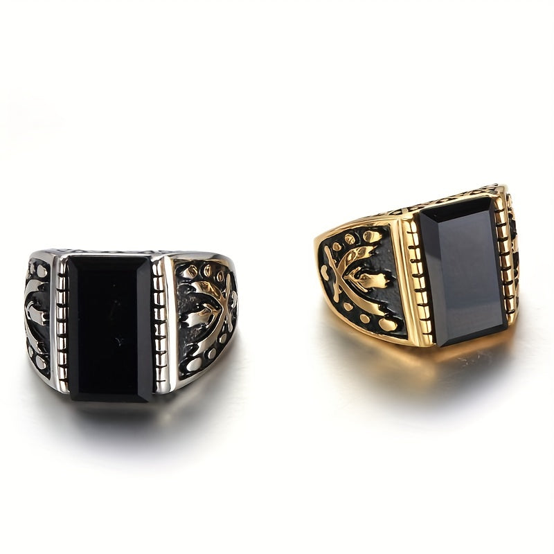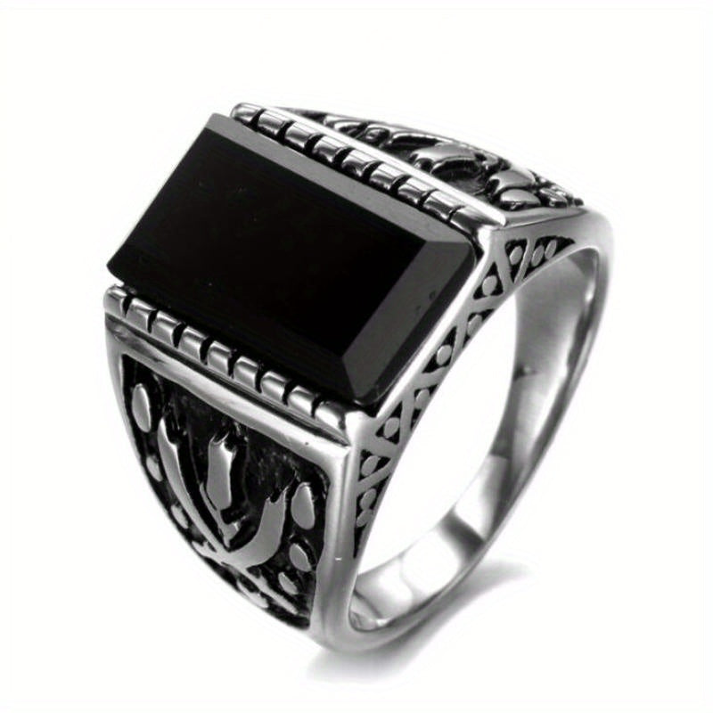 Add a touch of rock party style with this vintage classic ring featuring inlaid zircon gemstones. Perfect for men's jewelry collection.