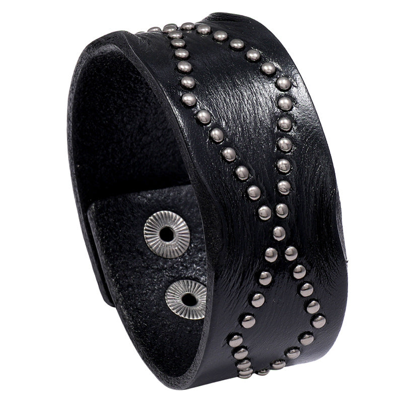 Vintage Leather Metal Rivet Men's Bracelet Wide Leather Wristband