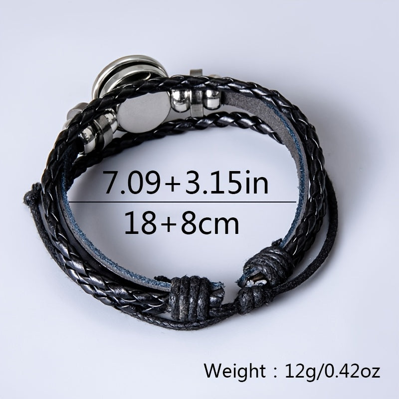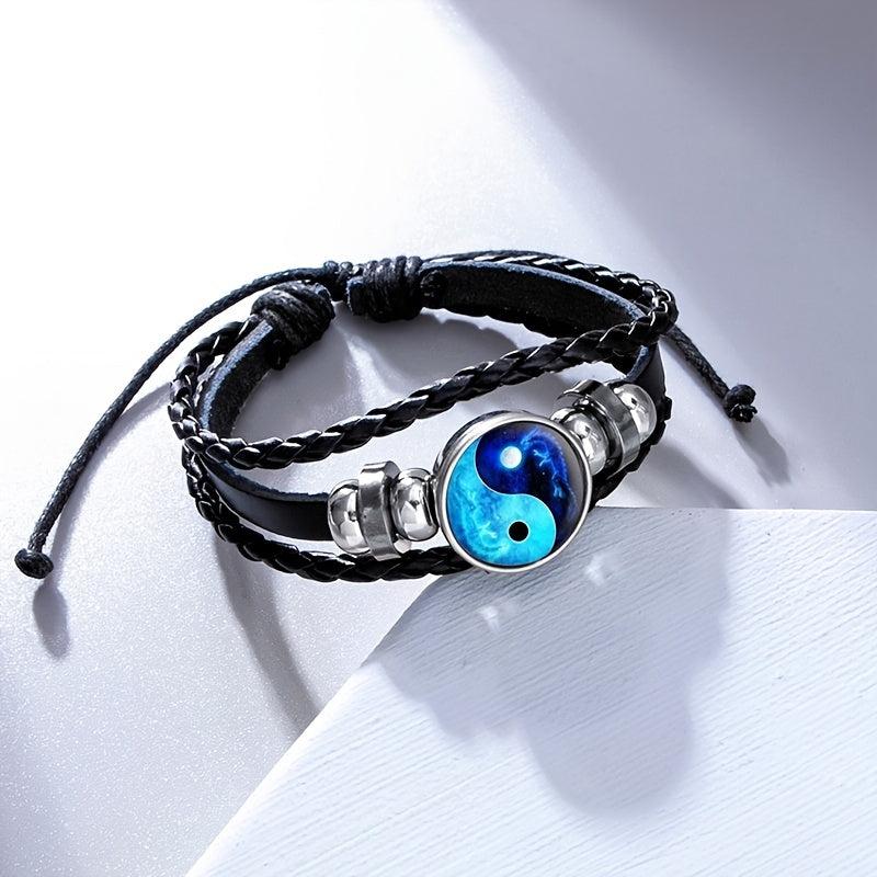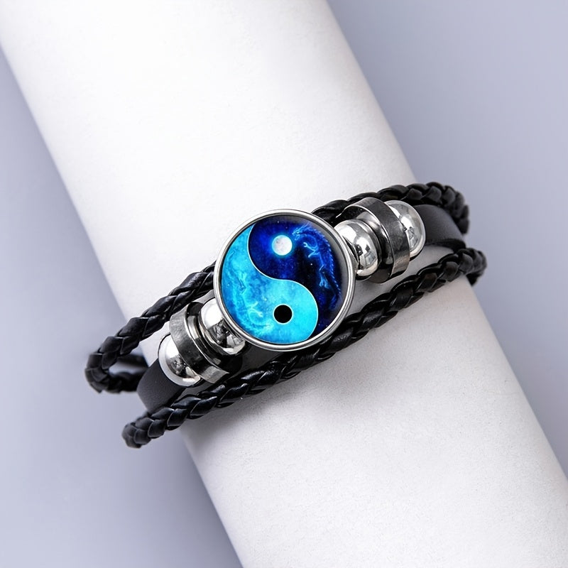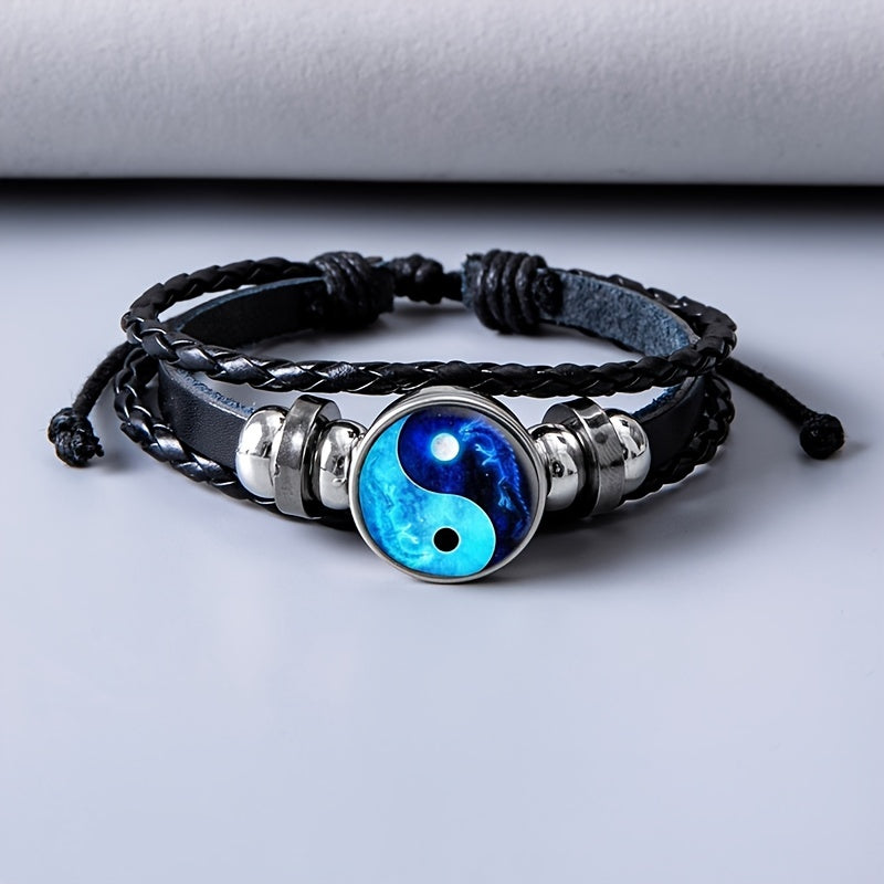 Vintage Men's Leather Bracelet Sun Moon Yin Yang Charm