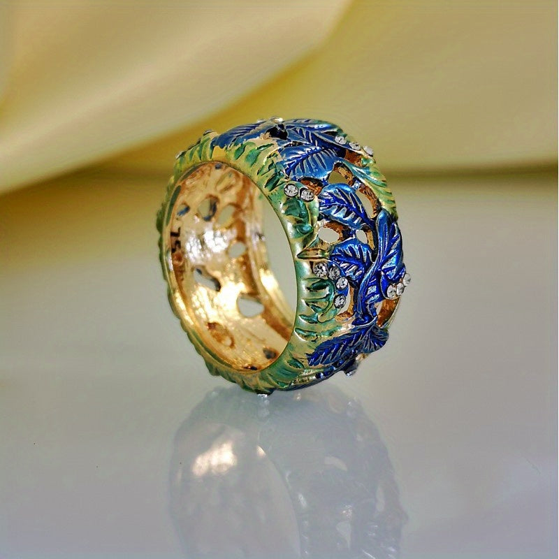 Vintage Men's Painted Flower Leaf Enamel Ring
