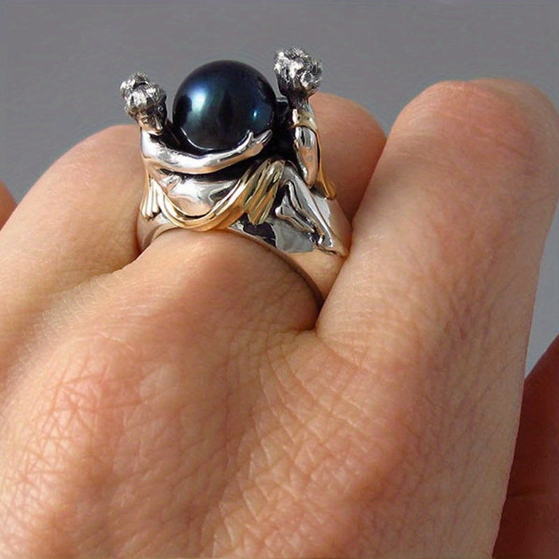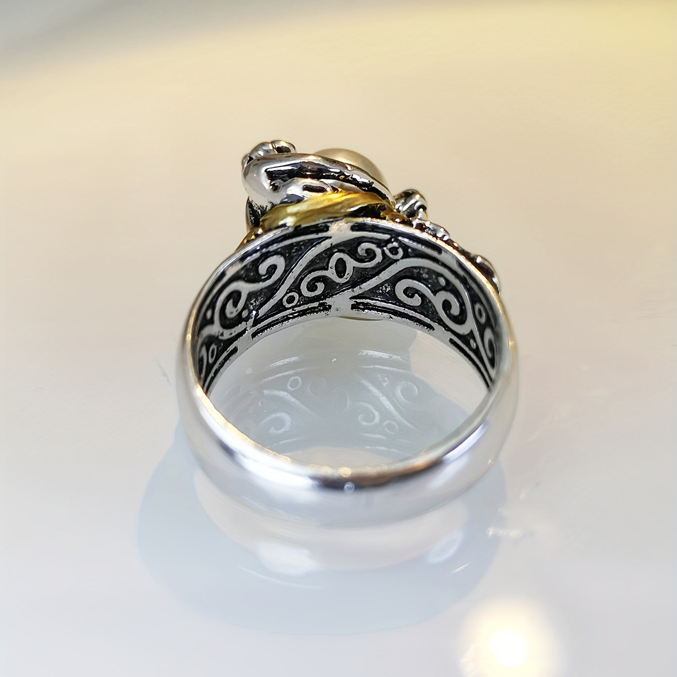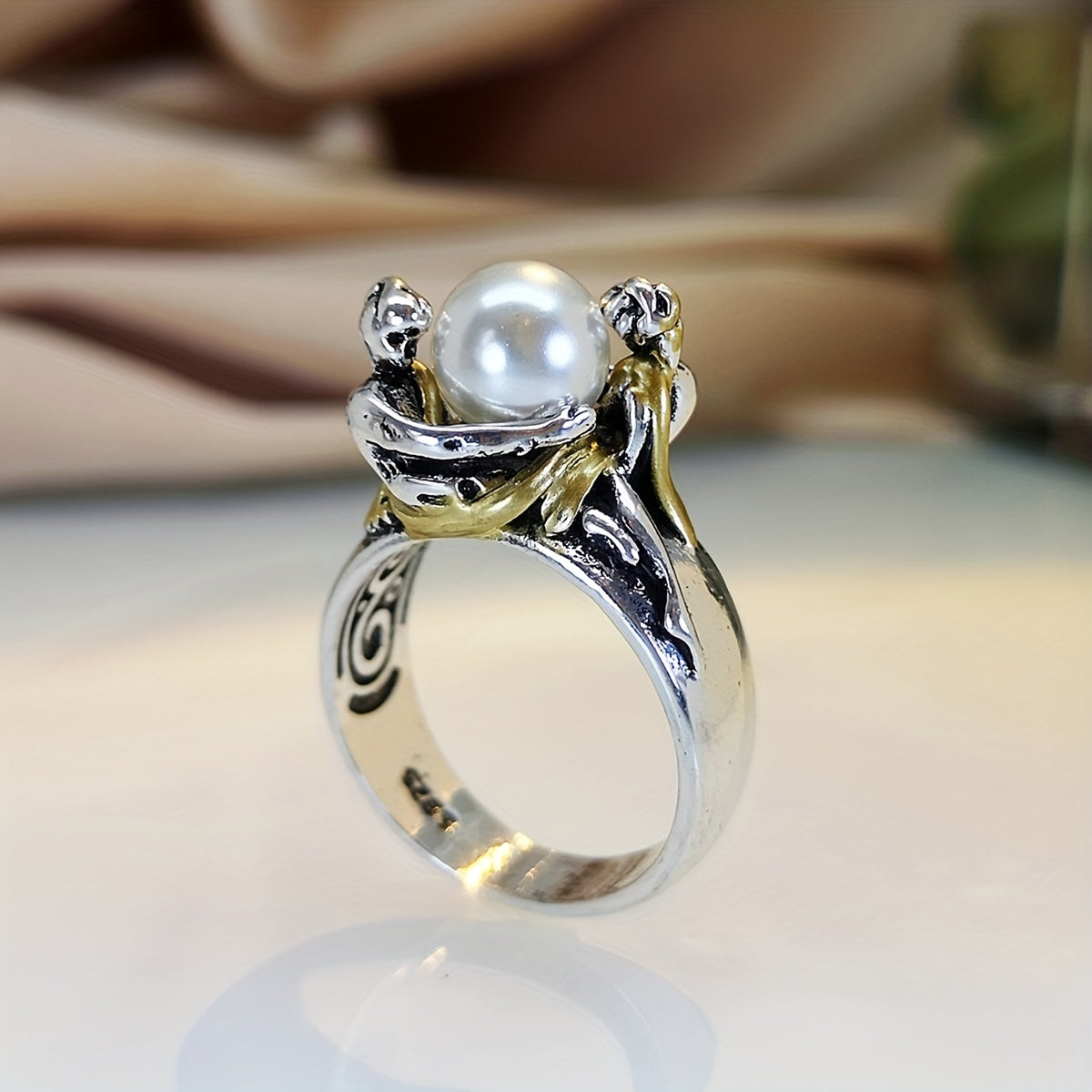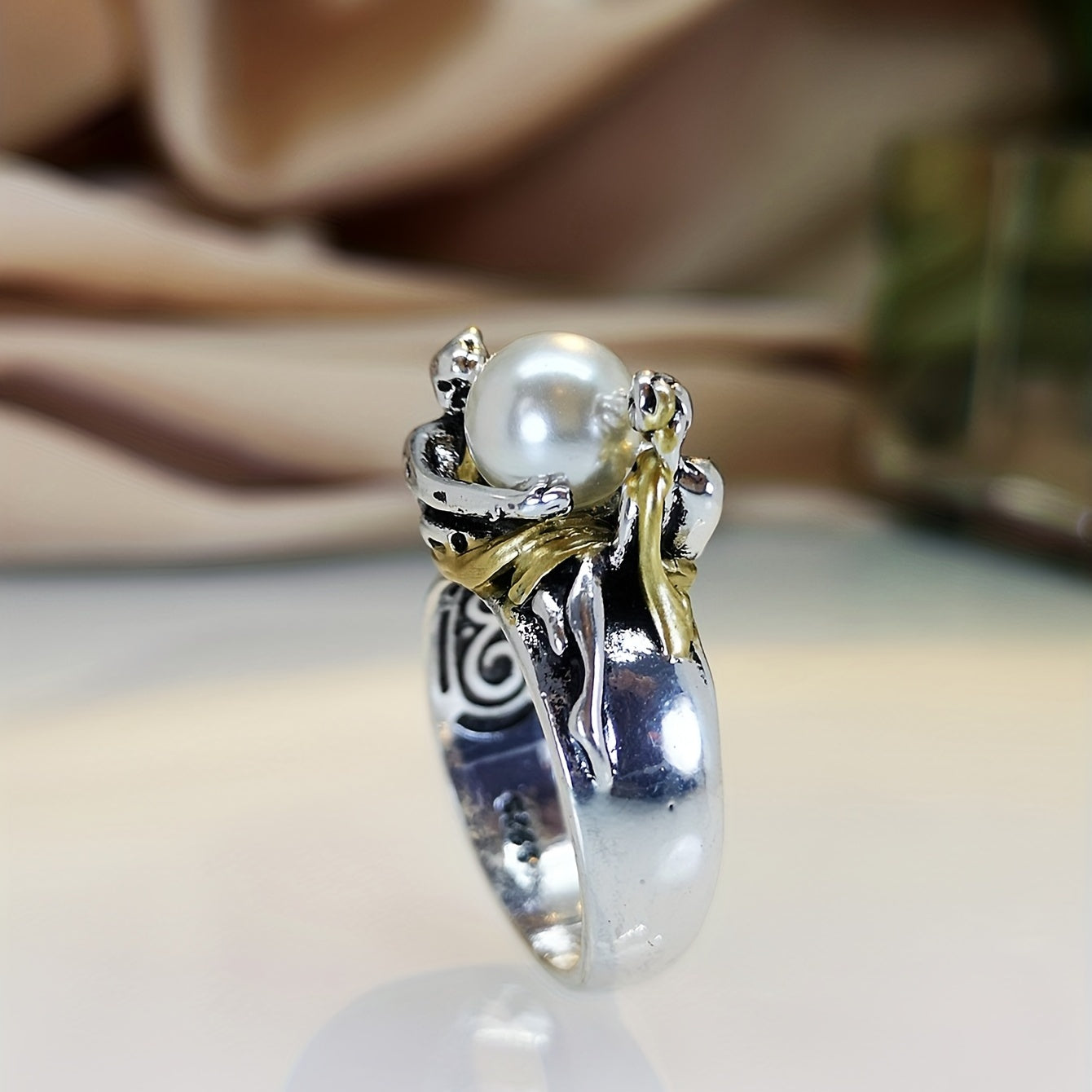 Add a touch of elegance to your style with this vintage men's ring featuring two-tone design and faux pearl accent.