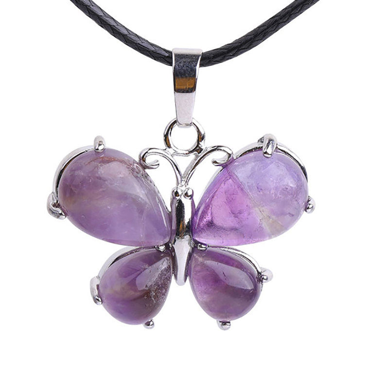 Add a touch of vintage charm to your DIY jewelry with this natural stone butterfly pendant. Perfect for necklaces or as a reiki pendulum, this amethyst pendant is a unique addition to your collection.