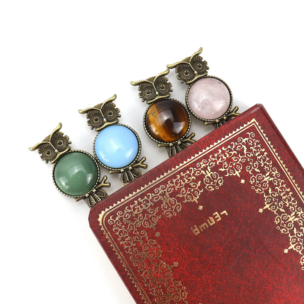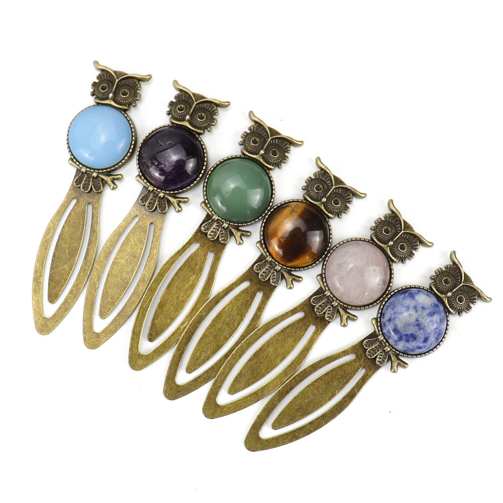This vintage owl bookmark features a mineral crystal semi gemstone that radiates reiki energy. It is a unique stationery item perfect for DIY projects and learning. Makes a great gift!