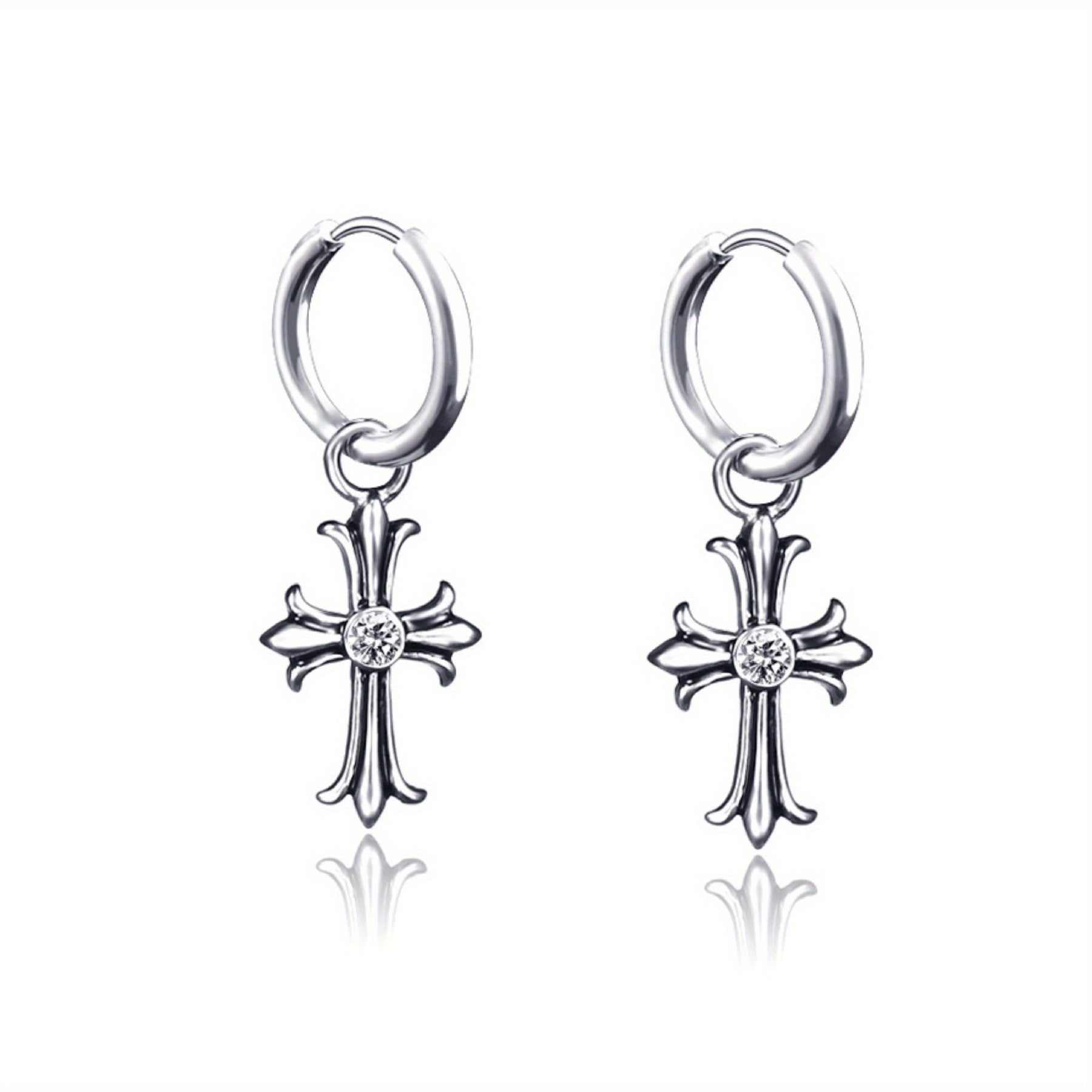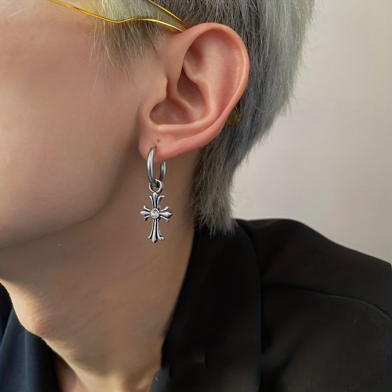 Add a touch of edgy style to your look with these vintage punk cross earrings. Made of durable titanium steel, these hip hop earrings are perfect for adding a bold statement to your outfit.